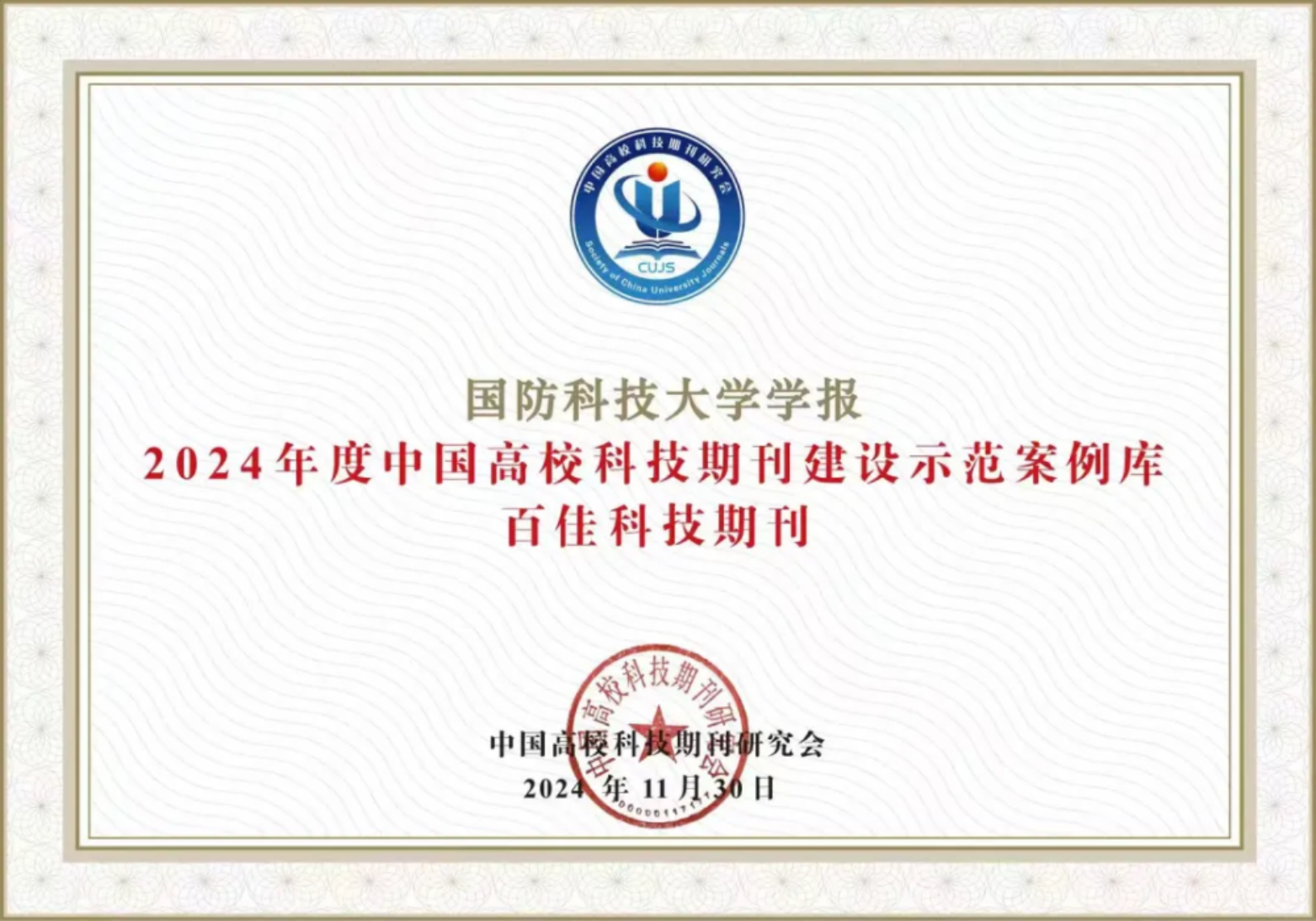 近日,中国高校科技期刊研究会公布了“2024年度中国高校科技期刊建设示范案例库•杰出/百佳/优秀科技期刊入库案例”,《beat365平台唯一官网学报》再次入选“百佳科技期刊”。