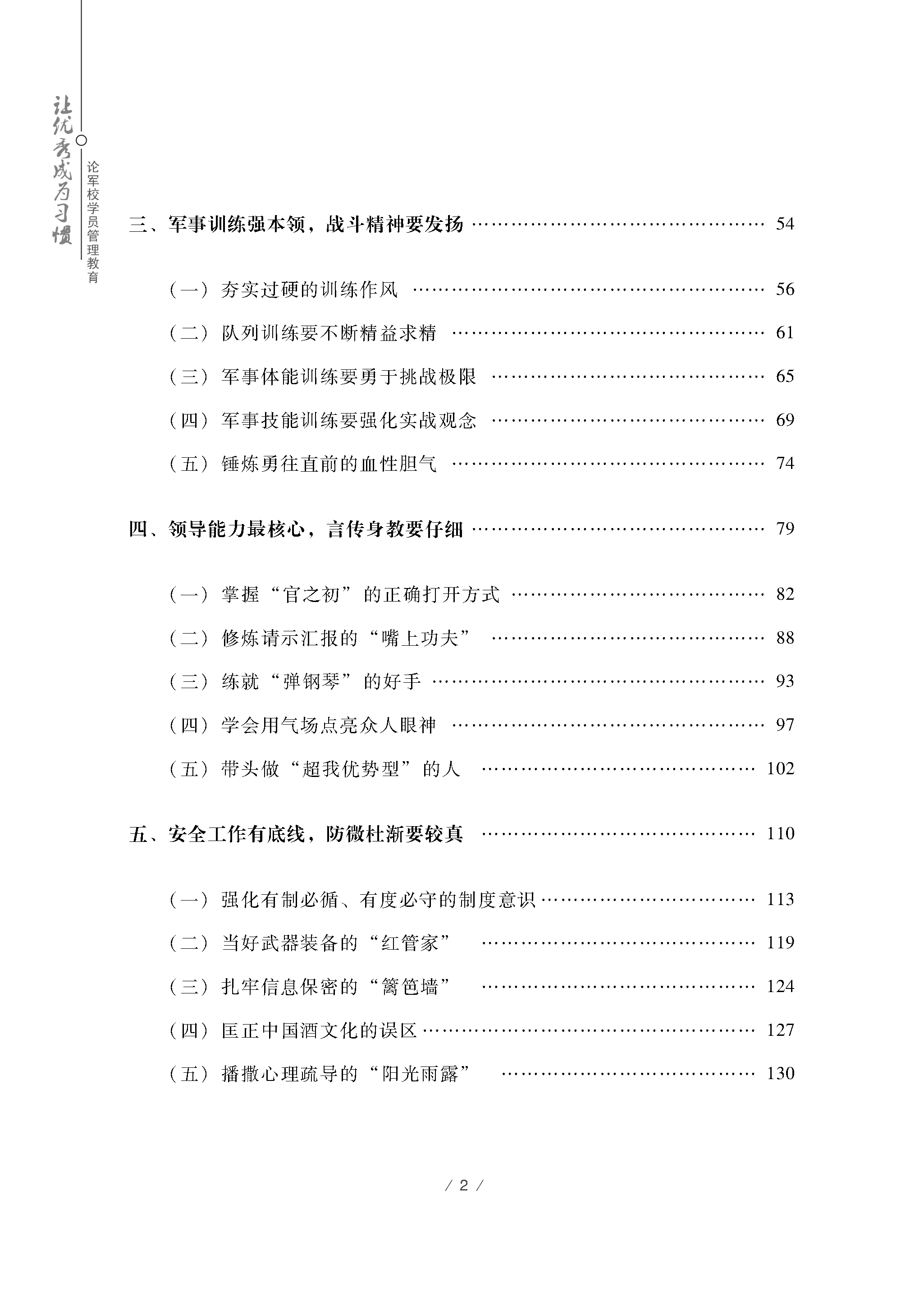 本书以立德树人、为战育人为方针指引,以专题漫谈为框架形式,对军校学员管理教育中的政治建设、教学训练、制度规范、行为操守、安全工作等内容进行阐释论述,既传递出一系列科学管理、正面教育的先进理念,又展示了一整套操作手册式的、工作范例式的实用方法,是作者基于工作实践不断反思和长期研究的成果,旨在为军校学员管理教育工作实践和改革创新提供指导与参考。由军事教育专家赵俭教授担任本书评审专家组组长,并作序推荐。