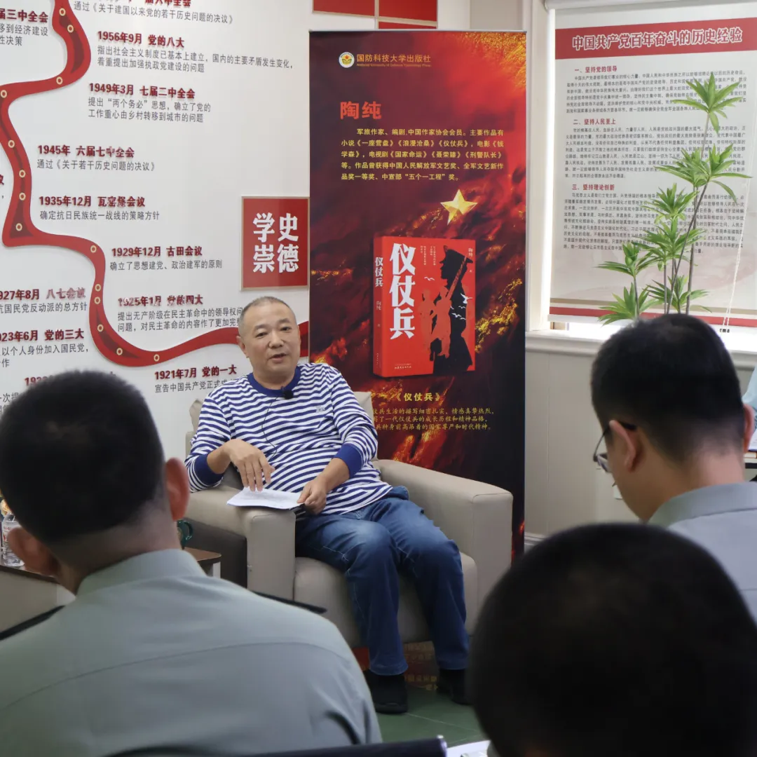 为庆祝第30个世界读书日,4月29日,一场“军旅作家谈”文学沙龙在出版社举行。著名军旅作家陈怀国、陶纯受邀出席,与编辑、师生等近60名文学爱好者共话文字力量,致敬出版初心。