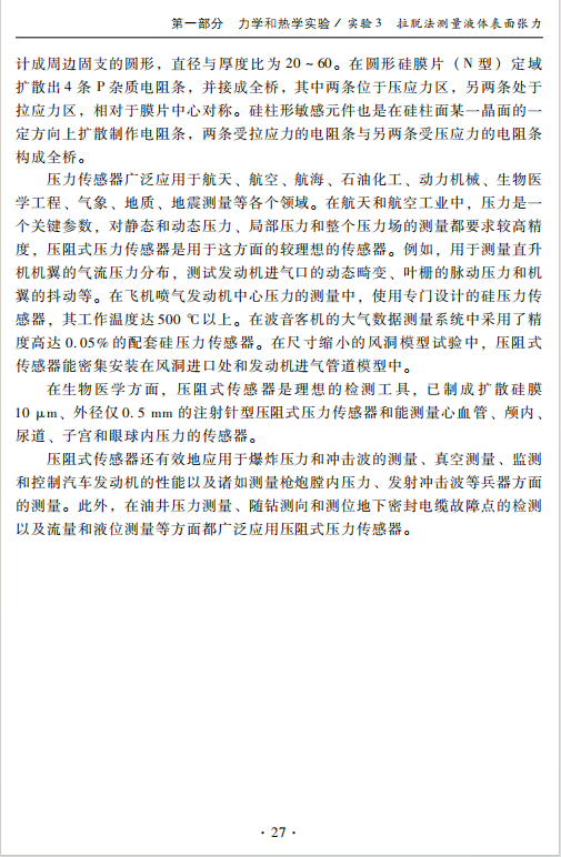 本书主要介绍了力学、热学、电磁学和光学相关的几类实验,涉及测定杨氏模量、拉脱法测量液体表面张力、液体黏滞系数测定、空气热机、超声定位与成像、等离子体物理特性测量、磁阻尼与动摩擦系数测定、高温超导材料转变温度测定、光敏电阻特性测试、光拍法测定光速等48个技术物理实验,每个实验从实验目的、实验原理、实验内容与步骤等几个方面进行了阐述,同时设置了思考题,以及实验技术在生产生活实际中的应用拓展阅读。