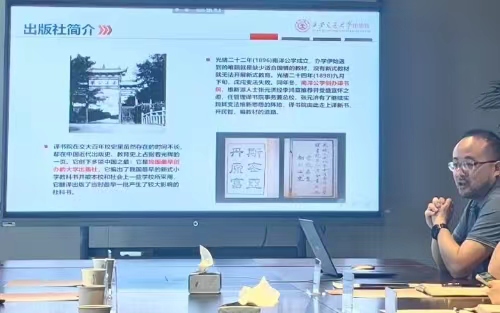 座谈会上,仲辉介绍了出版社基本情况、发展历程以及服务学校建设发展取得的成绩,表示同为大学出版社有很多共性的话题可以交流,希望通过交流相互借鉴、共促发展。