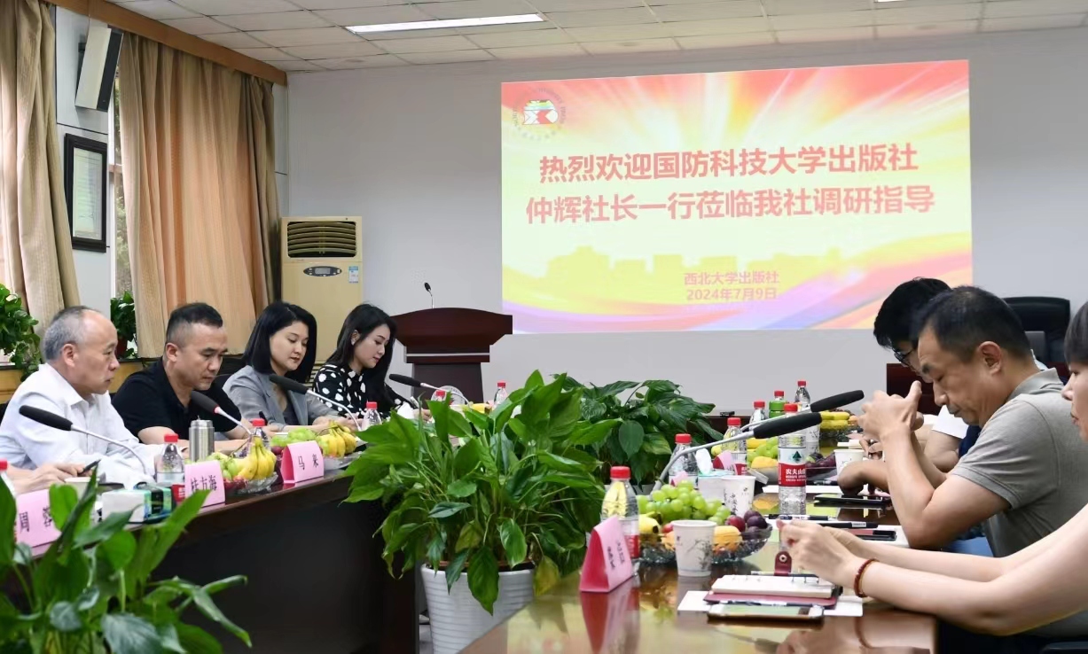 7月8日至10日,社长仲辉带队一行七人前往第四军医大学出版社、西安交通大学出版社、西北大学出版社、西北工业大学出版社开展调研。第四军医大学出版社社长朱德强、西安交通大学出版社社长李重、西北大学出版社社长马来、西北工业大学出版社社长高大力,对我社一行到访表示热烈欢迎。