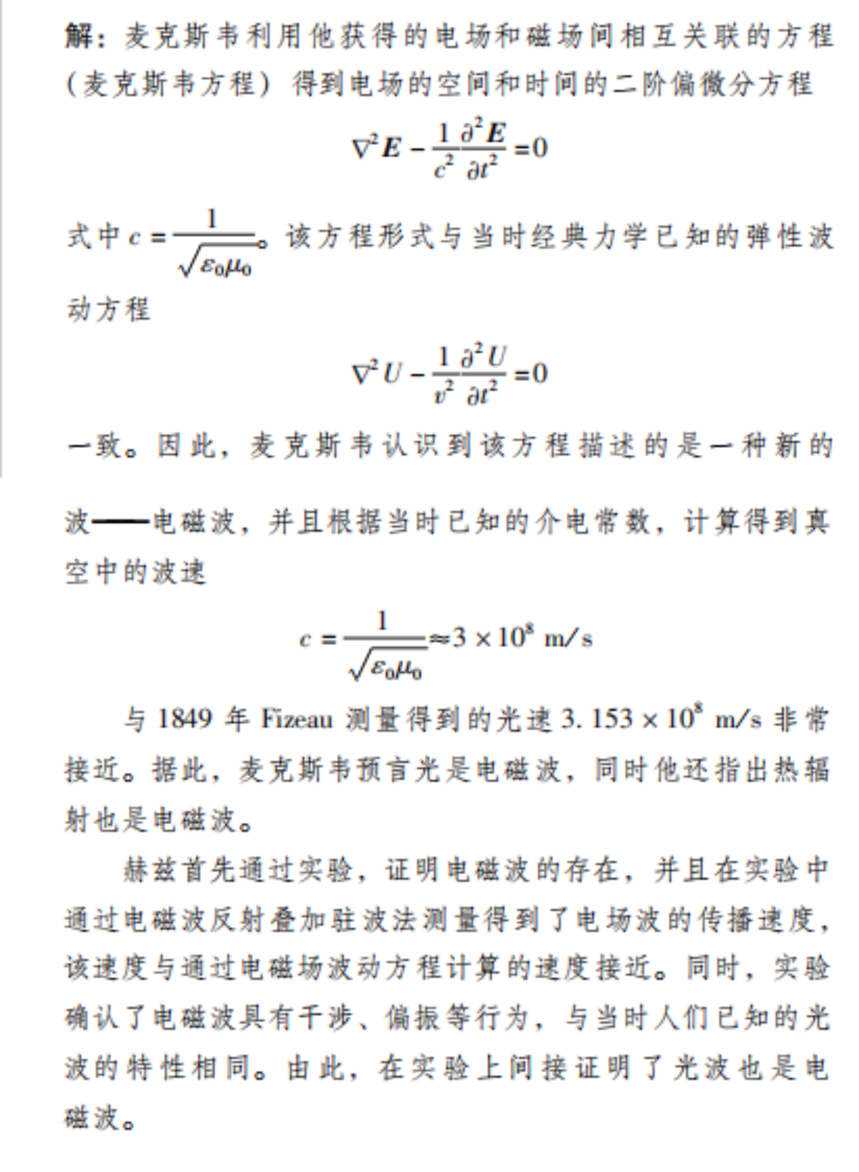 2.麦克斯韦在获得描述电磁场变化关系的方程组后,是根据什么预言光波是电磁波的?赫兹当时的实验直接证明光波是电磁波了吗?最终人们是如何通过麦克斯韦电磁场理论和赫兹实验,确信光波是电磁波的?