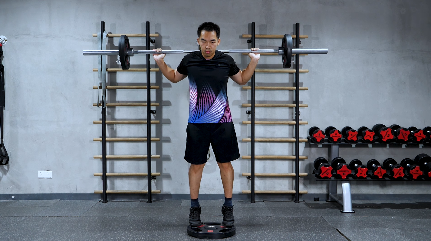 负重提踵 踩杠铃片