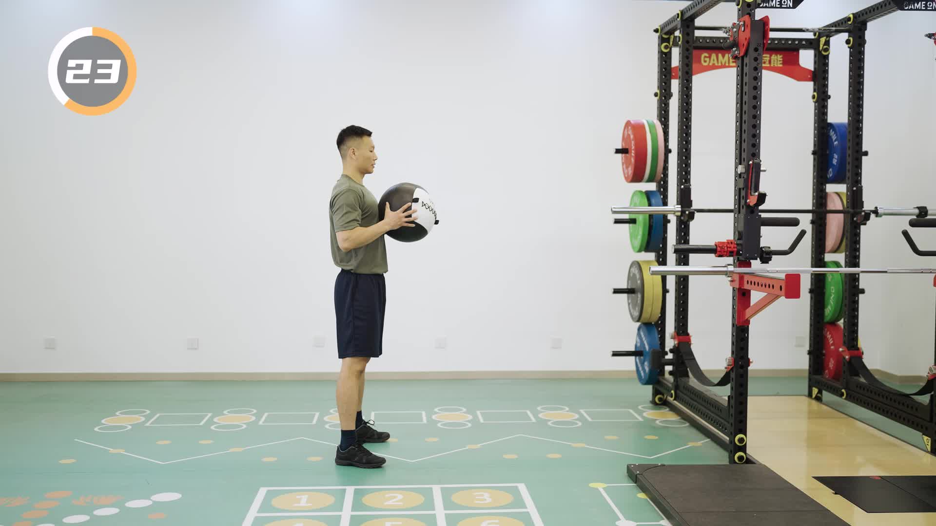 3-137 垂直砸药球接俯撑