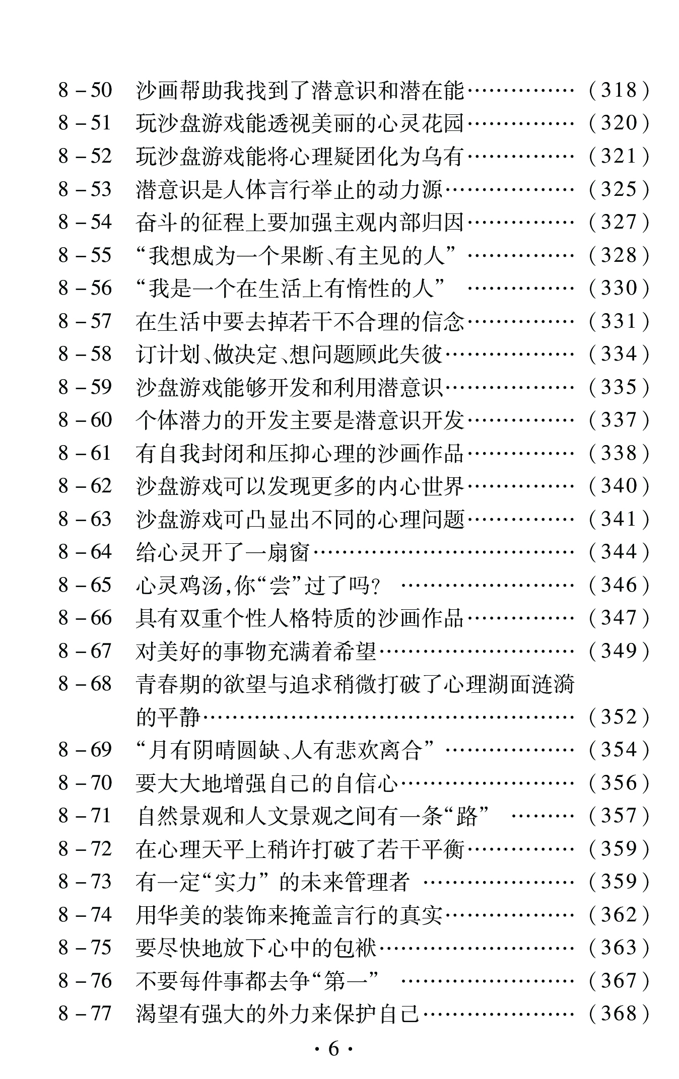 本书通过分析不同作者的沙盘游戏作品,分别论述了小学生与心理健康、初中生与心理健康、高中生与心理健康等内容,有近半篇幅介绍大学生的沙盘游戏作品,在每帧作品释析后附有大学生体会文章及有关心理科学方面的知识介绍,此外还分别对幼儿、成年人、团体成员作者的沙盘游戏作品分析论述。这些作品对各级各类不同程度的青少年学生及广大读者的心理成长有帮助借鉴作用。