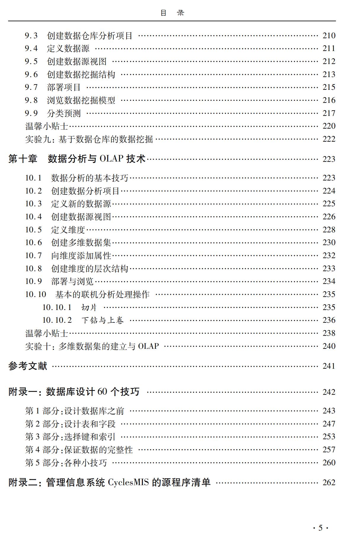 本书主要致力于使初学者由浅入深、循序渐进地学习和实践数据库的原理与设计方法,是一本有关数据库的相关教材。本书共有十个实验,分为上篇和下篇,上篇的五个实验是数据库课程的基本实验,主要侧重于数据库技术的基础建库能力训练,包括安装和配置数据库管理系统、建立数据库、查询数据库、应用程序访问数据库和建造复杂数据库。下篇的五个实验针对数据库的实际应用,难度较大,主要侧重于数据库技术的高级应用能力训练,包括数据库系统开发方法、数据库系统安全管理、建造多媒体数据库、数据仓库与数据挖掘和数据分析与可视化。