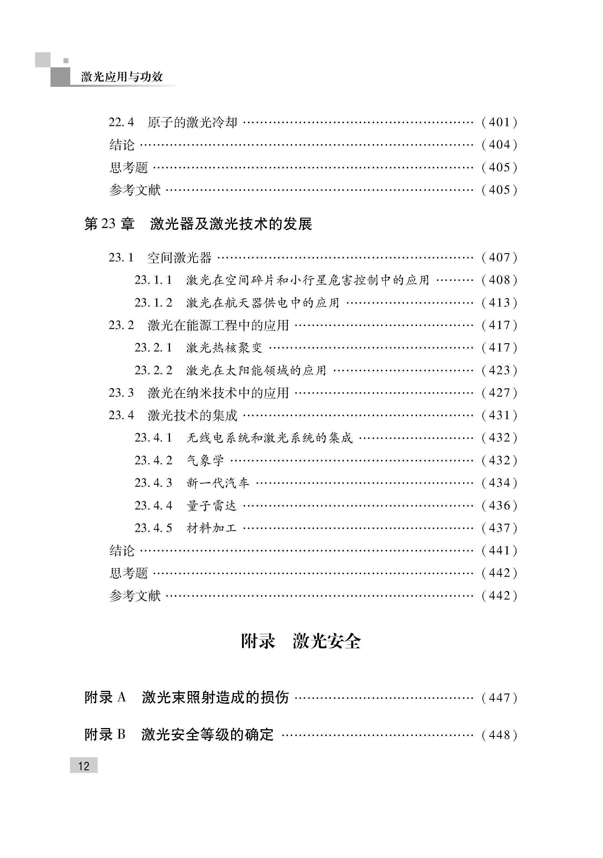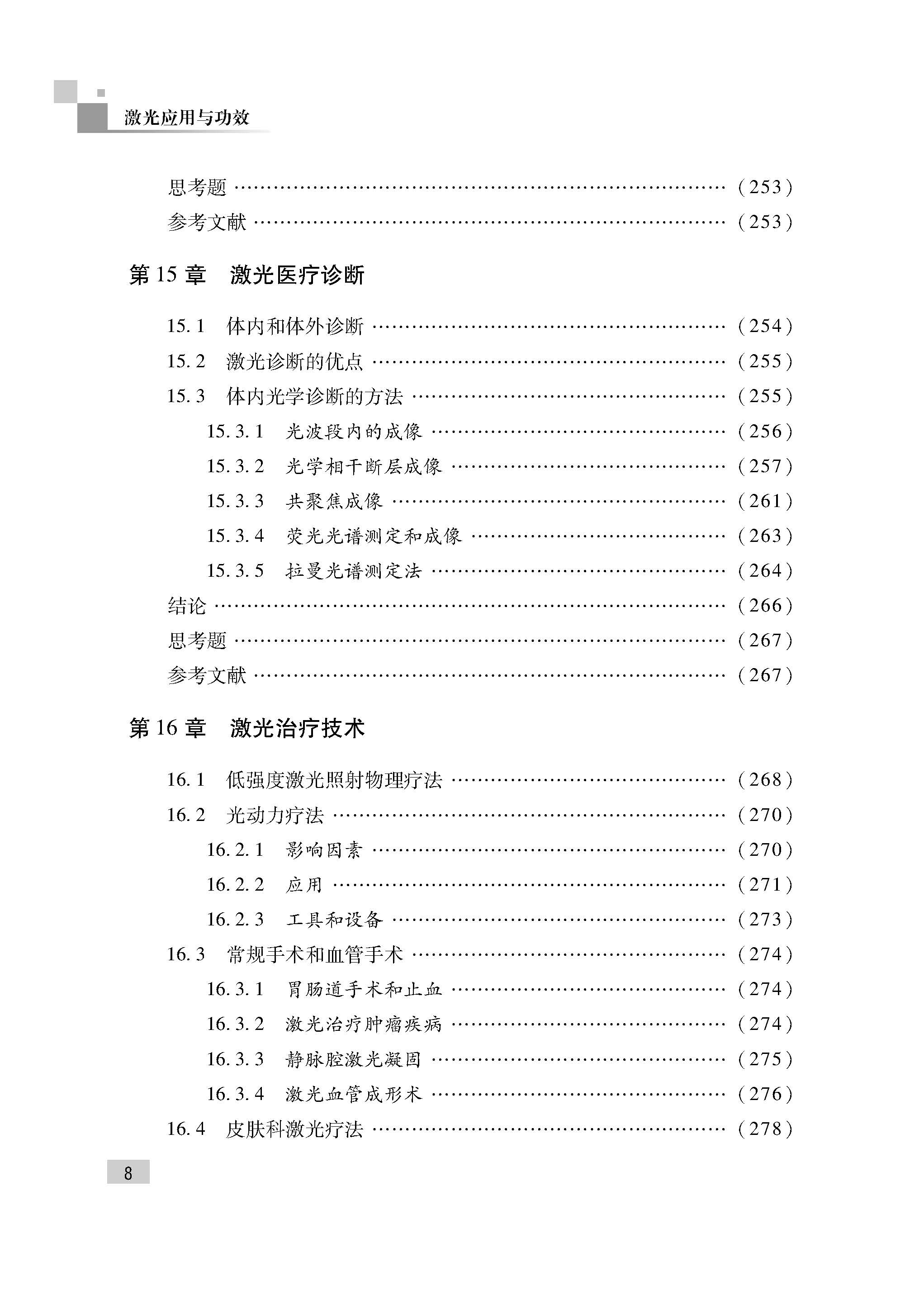 本书介绍了激光在距离测量、信息传输、工业加工、环境监测、医学和军事等方面的多种应用,包括解决实际问题的方法、使用条件、对激光性能的要求等。本书系统梳理了丰富多样的激光技术及其应用,可供激光专业本科生、研究生学习参考,也可供相关领域科研、教学和管理人员拓展知识。