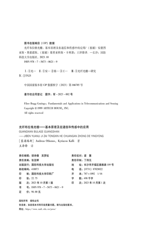 书名:光纤布拉格光栅——基本原理及在通信和传感中的应用
