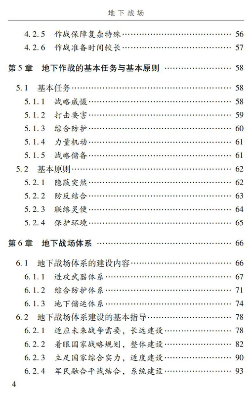 《地下战场》从战场空间发展演变的规律出发,立足社会科技进步、现代战争实践和武器装备更新等实际,系统阐述了战场空间向地下拓展的必然性与阶段性,深入分析了地下作战的特点、分类与基本规律,探索了地下战场体系与地下作战力量的建设理论,预测式地提出了未来地下战场的基本作战样式,并系统分析了美国、日本、俄罗斯与我国台湾地区的地下空间作战运用情况,为构建地下作战能力提供了基本理论遵循,丰富创新了军事战略战术理论,拓展了国家安全战略内容。《地下战场》现状分析全面深刻、发人深省,理论阐述层次清晰、逻辑严密,图文表述严谨,思想性、理论性、实践性较强,可为国家战略布局、军事理论创新与军队力量建设提供参考。