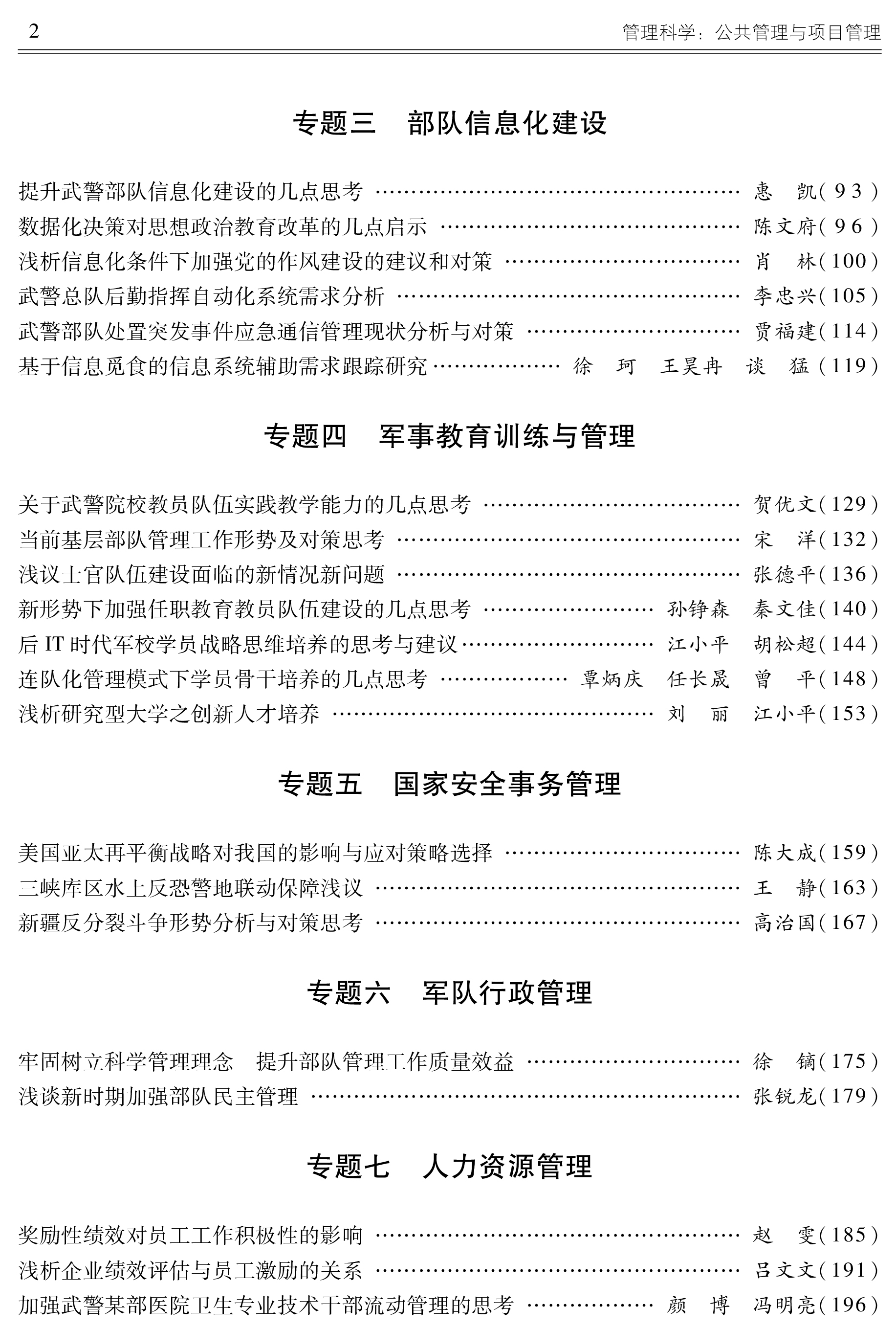 军队行政管理、人力资源管理、公共经济与财政、项目组织与管理、社会管理与公共服务、部队