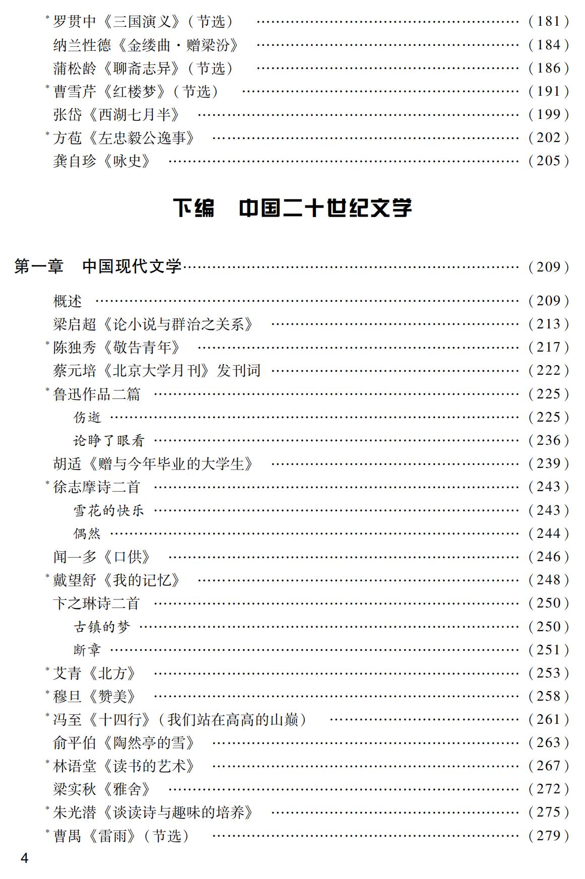 本教材按照文学史线索编排,分为中国古代文学和中国二十世纪文学上下两编。上编共五章,包括先秦两汉文学、魏晋南北朝文学、隋唐五代文学、宋辽金文学、元明清文学;下编共两章,包括中国现代文学和中国当代文学。本教材共选作品120篇,其中军旅文学占近四分之一,具有鲜明的军事特色。