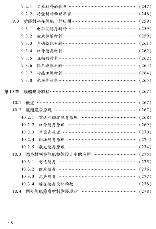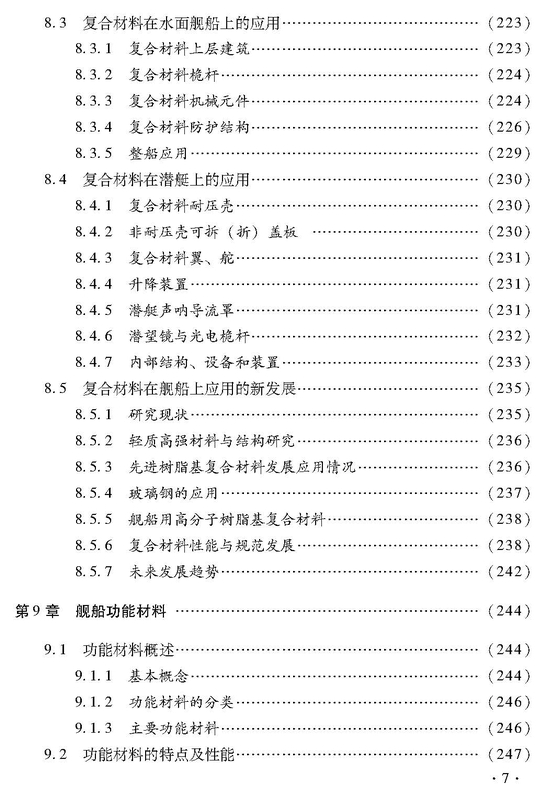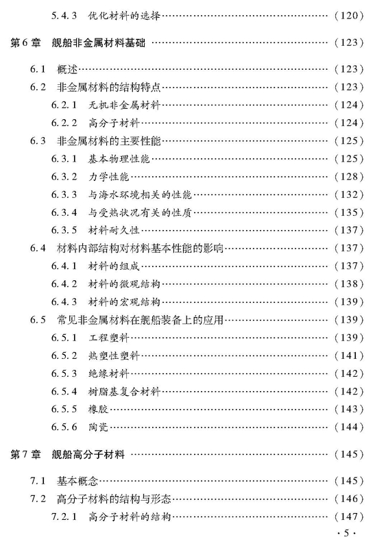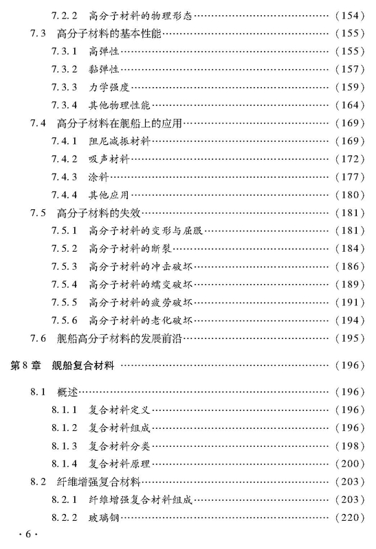 书稿主要对各种船用材料的结构、性能和应用情况展开论述,旨在辅助读者更好地掌握舰船装备的材料特性,为装备的研制和维修保障奠定基础。具体章节包括绪论、舰船金属材料基础、舰船用钢、有色金属合金及其在舰船上的应用、舰船的腐蚀与防护、舰船非金属材料基础、舰船高分子材料、舰船复合材料、舰船功能材料以及舰船隐身材料。