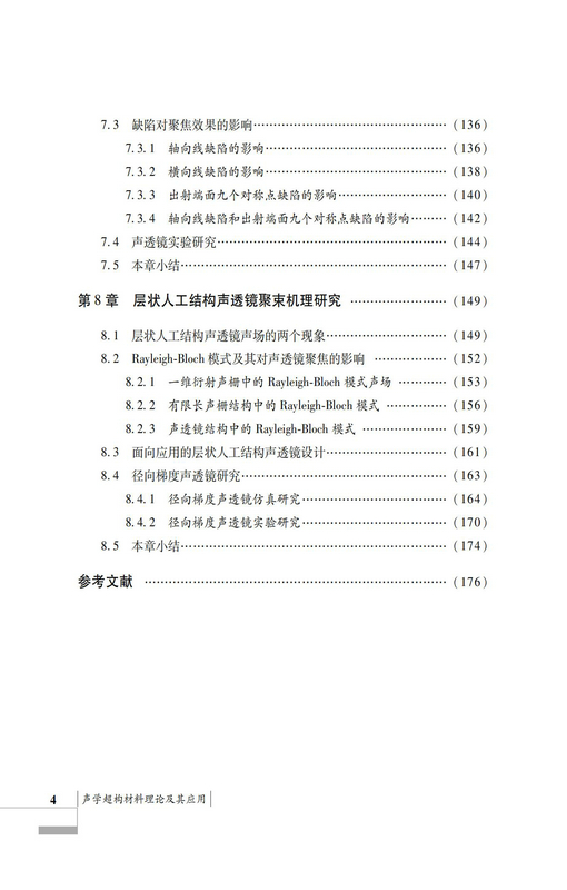本书主要围绕声学超构材料这一主题开展相关研究。首先,剖析了不同概念之间的异同,介绍了声学超构材料的研究进展及其典型计算方法;其次,阐述了声隐身衣的理论及实现方法,并介绍了一种基于弹性材料的传感器隐身衣;再次,围绕Helmholtz腔局域共振结构,分别描述了一维传播特性和二维隔声特性;最后,系统分析了平面梯度介质声透镜的设计方法、特性、理论与实验研究结果,并深入研究了层状人工结构声透镜聚束机理。其对初学者和深造者都有所裨益。