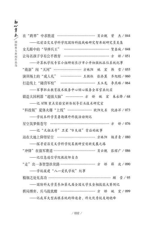 • 书名:初心隽永——国防科大新闻作品选