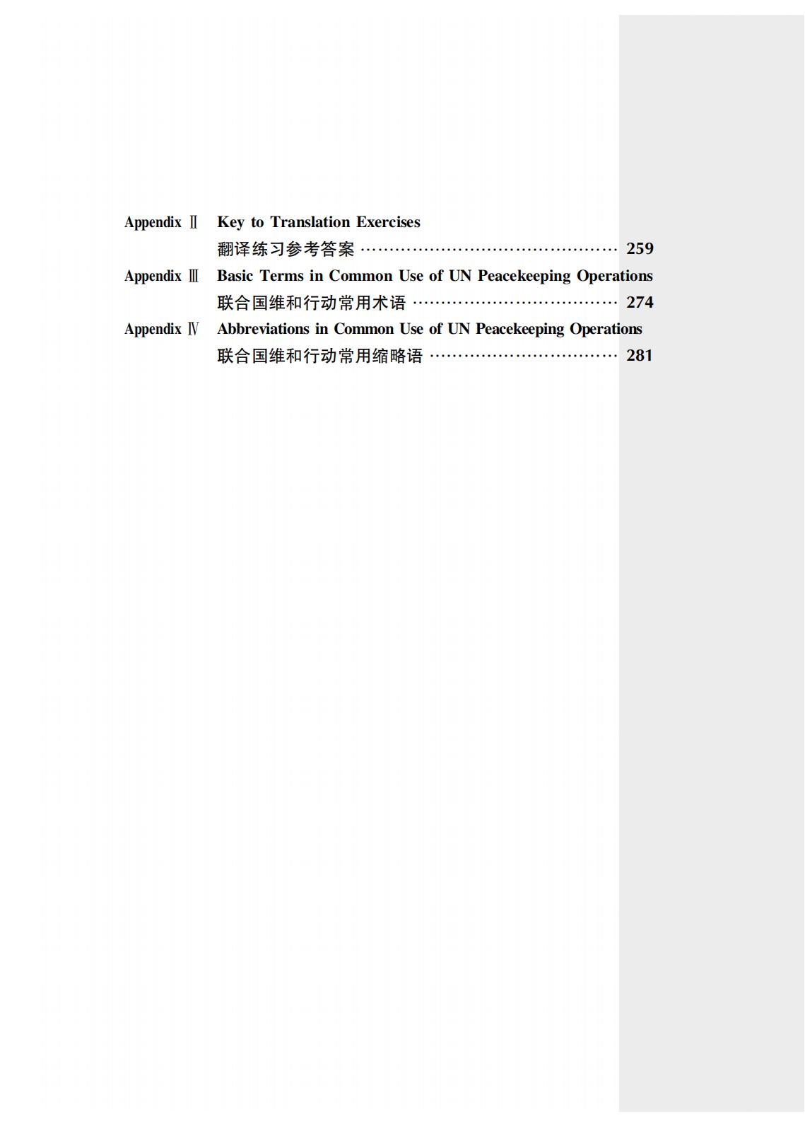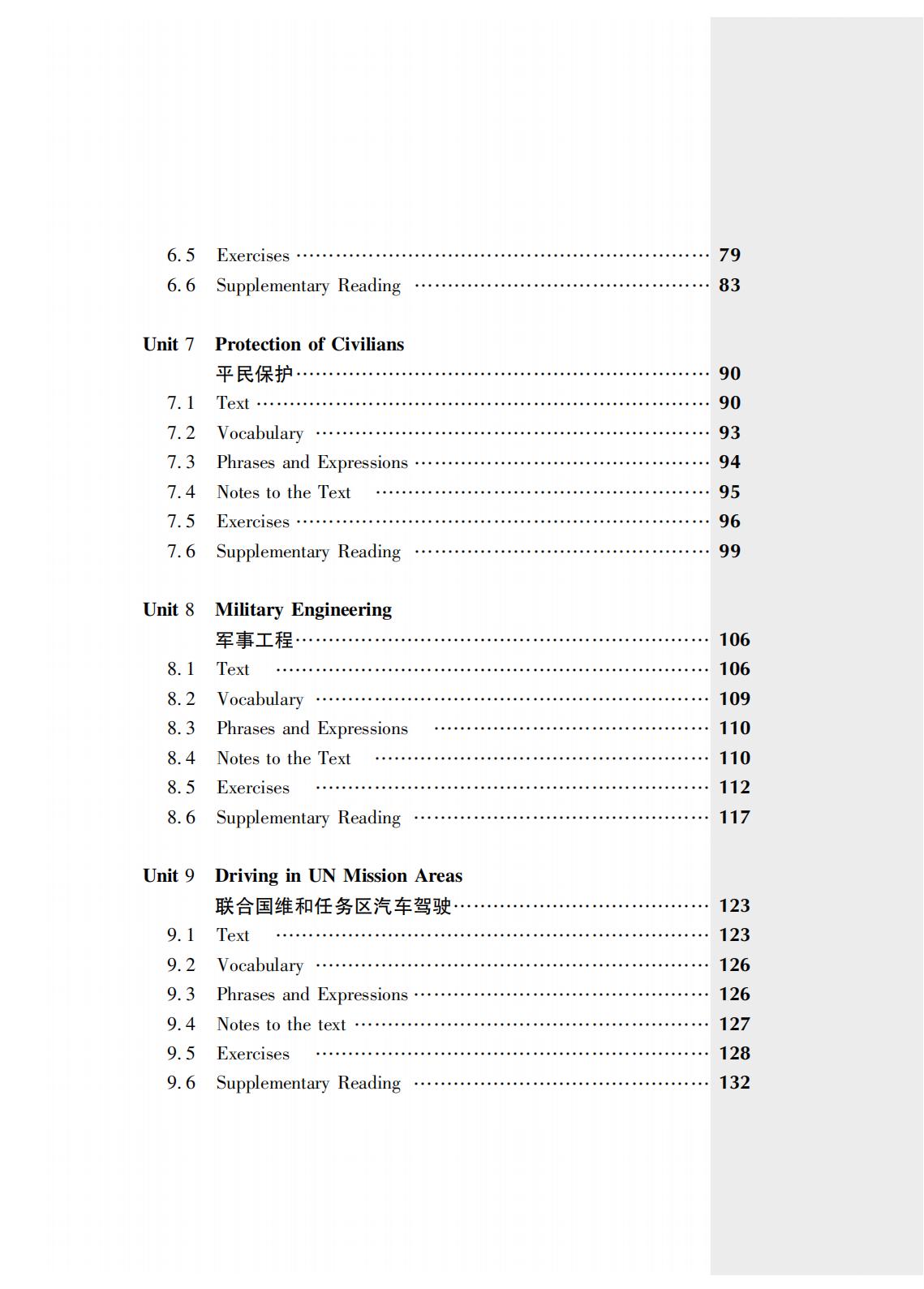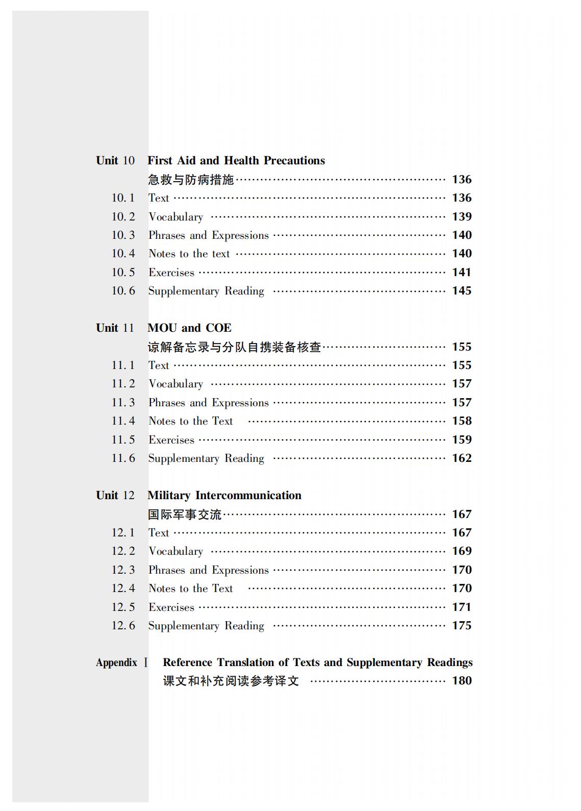 《维和部队高级英语教程》是“联合国维和行动培训系列教材”之一,由beat365平台唯一官网国际关系学院刘钊教授组织编写。内容主要涉及联合国维和行动、军制和军兵种常识、武器与装备、军容风纪和队列动作、军事地形与导航、巡逻与安全检查、平民保护、军事工程、联合国维和任务区汽车驾驶、急救与防病措施、谅解备忘录与分队自携装备核查以及国际军事交流等。主要用于分队指挥及骨干人员的英语强化培训,经过该课程的系统训练,受训学员不仅能提高自身英语水平,还能增强在联合国维和任务区执行涉外联络和英语交流能力,并可作为全军维和部队官兵遂行使命任务和应对各类复杂情况的重要参考书,实用性强。其所精选的内容已经在全军维和培训中使用多年,在维和人才能力素质培养中发挥了重要作用。