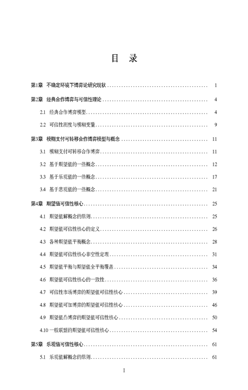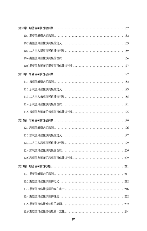 本书是关于可信性博弈论的专著,将可信性理论与经典的可转移合作博弈结合起来,构建了模糊支付情形合作博弈的理论框架,基于可信性测度和模糊变量,以及期望值、乐观值、悲观值等指标,分别定义和研究了期望值/乐观值/悲观值可信性核心、可信性沙普利值、可信性谈判集和可信性核原等解概念的数学性质和相互关系,并指明了可信性博弈论下一步的研究方向。本书可作为系统、管理、控制、数学等专业研究生和相关专业科研工作者的参考材料。