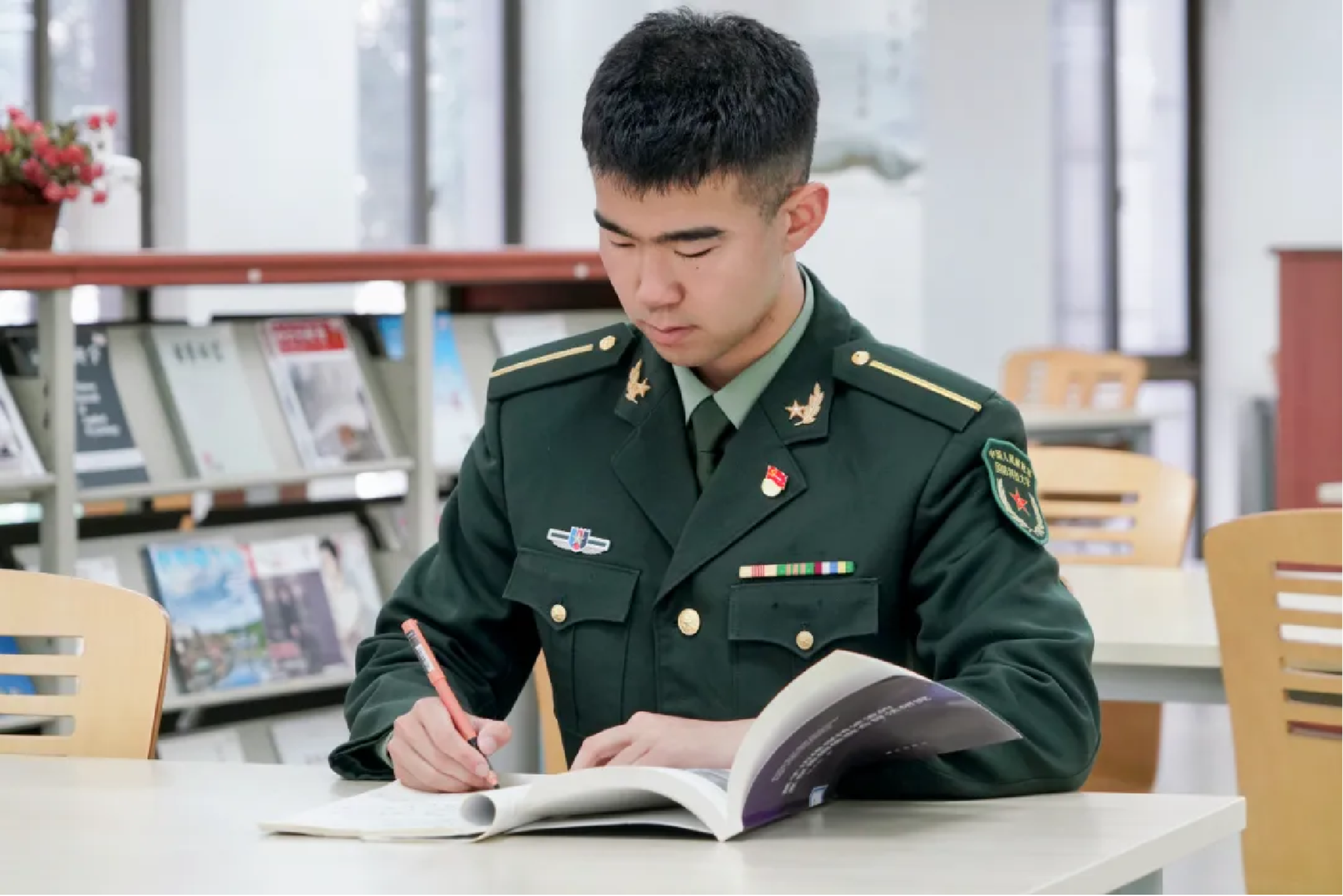 这颗对古诗词的赤子之心,源自他对祖国的忠诚和热爱,源自一身戎装的荣誉和使命。而诗词的激励也渗透进了他在军校学习生活的方方面面。