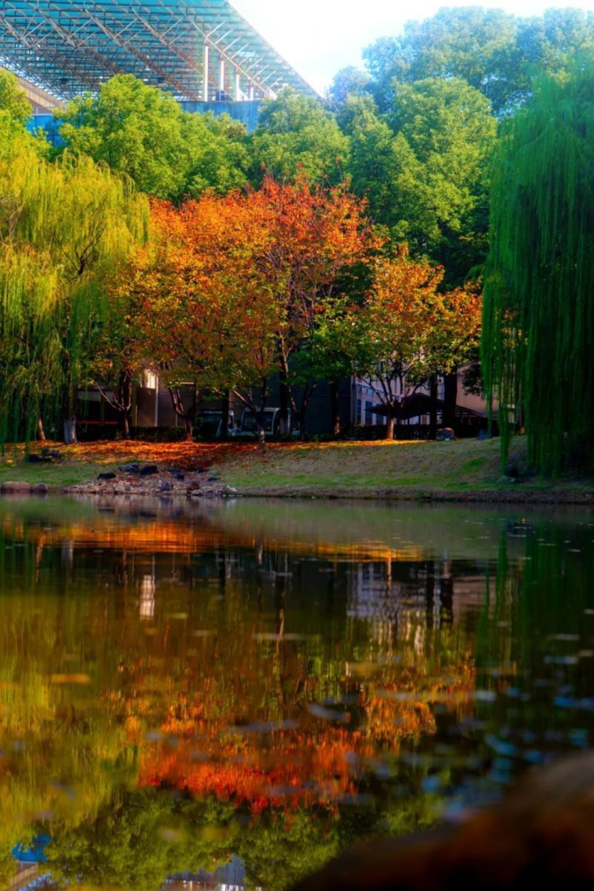 一湖秋水织就梦境,红叶绿柳的倒影在涟漪里荡作秋的呢喃,似梦的扉页,沉溺在水与影、实与虚交融的幻境,任时光在秋的梦里,漾开一圈又一圈诗意的涟漪。