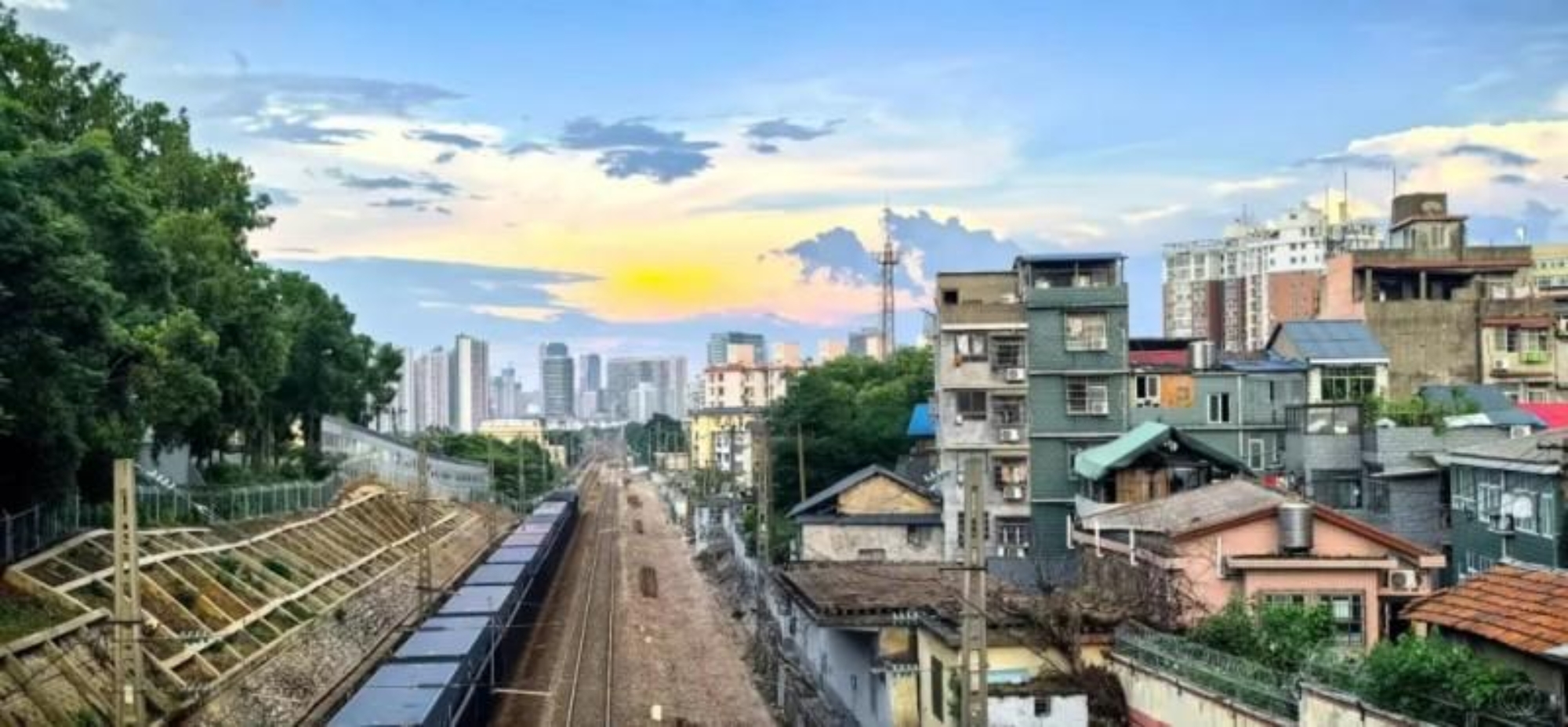 跨线桥上,铁轨如弦、云霞为章,旧居烟火与新城天际在黄昏里叠合。这方空间,既是自力更生的建设印记,也是强军报国的理想锚点——列车碾过岁月,楼宇指向苍穹,将科大人的坚守与时代的奋进,织进同一片夕照里,也是科大人把烟火日常织进强军报国的时代诗行。