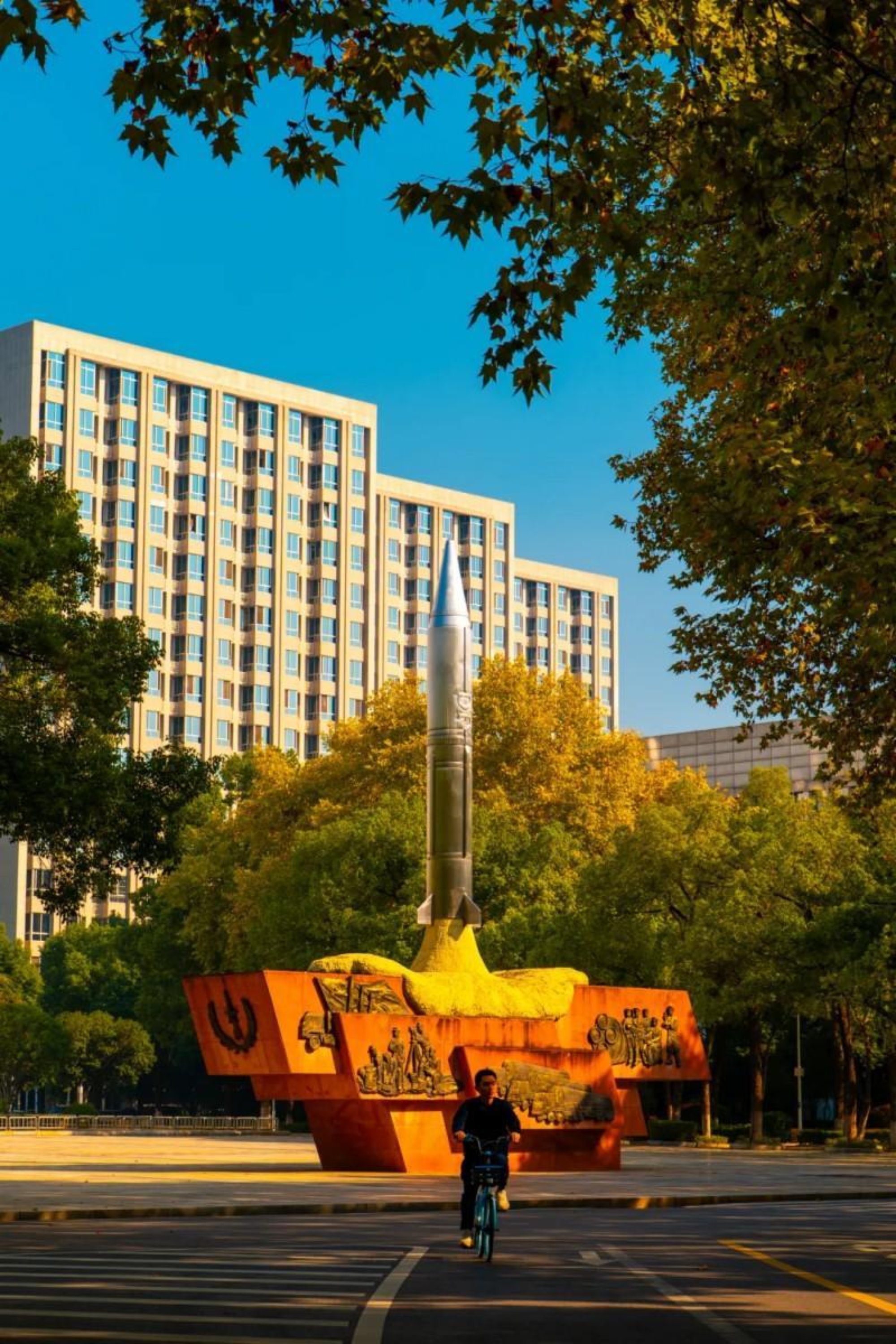 秋阳澄澈,金黄叶影与葱郁绿枝交织,是知识沉淀的底色,亦是国防力量的蓄力之态。高地之上“升腾”的导弹刺破天际,似是将厚重化为奋进的动能。秋从不是凋零的注脚,而是蓄力后的勃发。