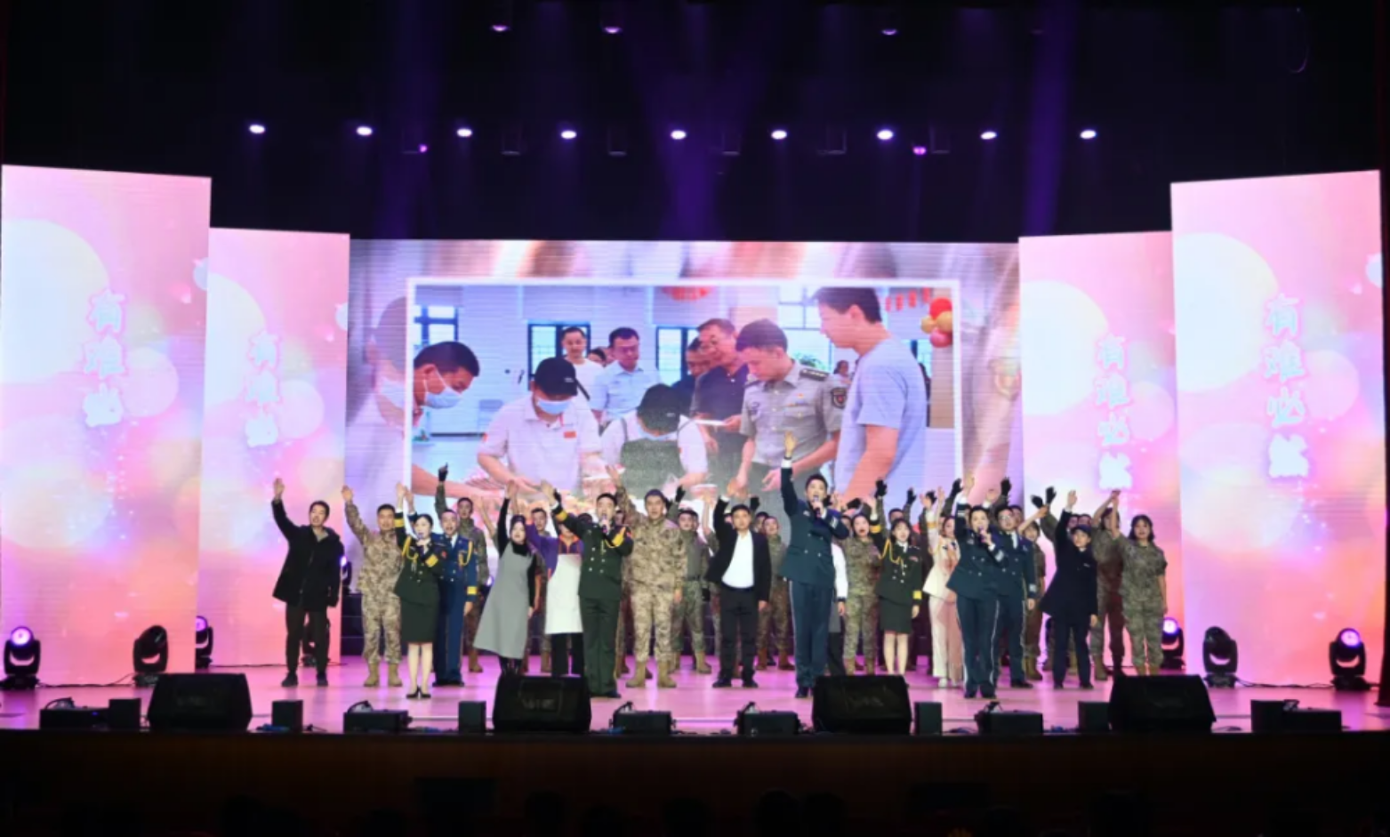 晚会现场,来自管理保障部机关、服务保障中心、教练勤务营的先进典型走上舞台,迎来他们的荣耀时刻。大合唱《相亲相爱的一家人》温暖而坚定,来自军委后勤保障部资金集中收付管理中心长沙结算室、联勤保障部队第九二一医院等兄弟单位官兵代表与大家同唱一首歌、共筑一个家,为晚会画上了圆满的句号。