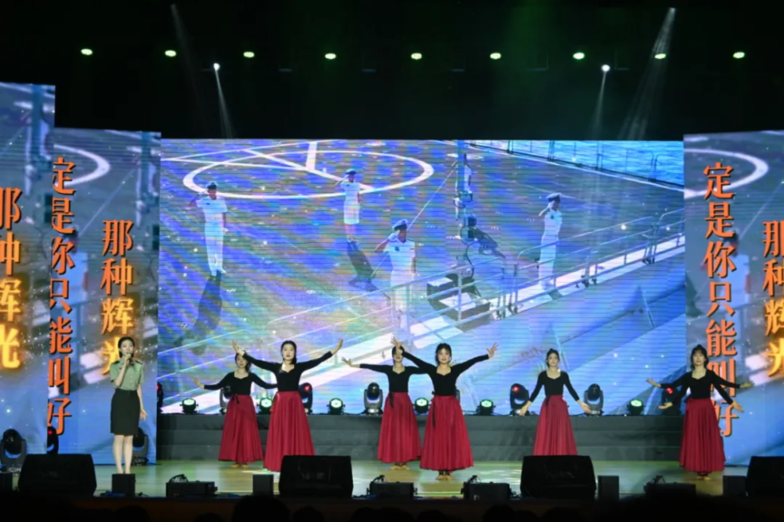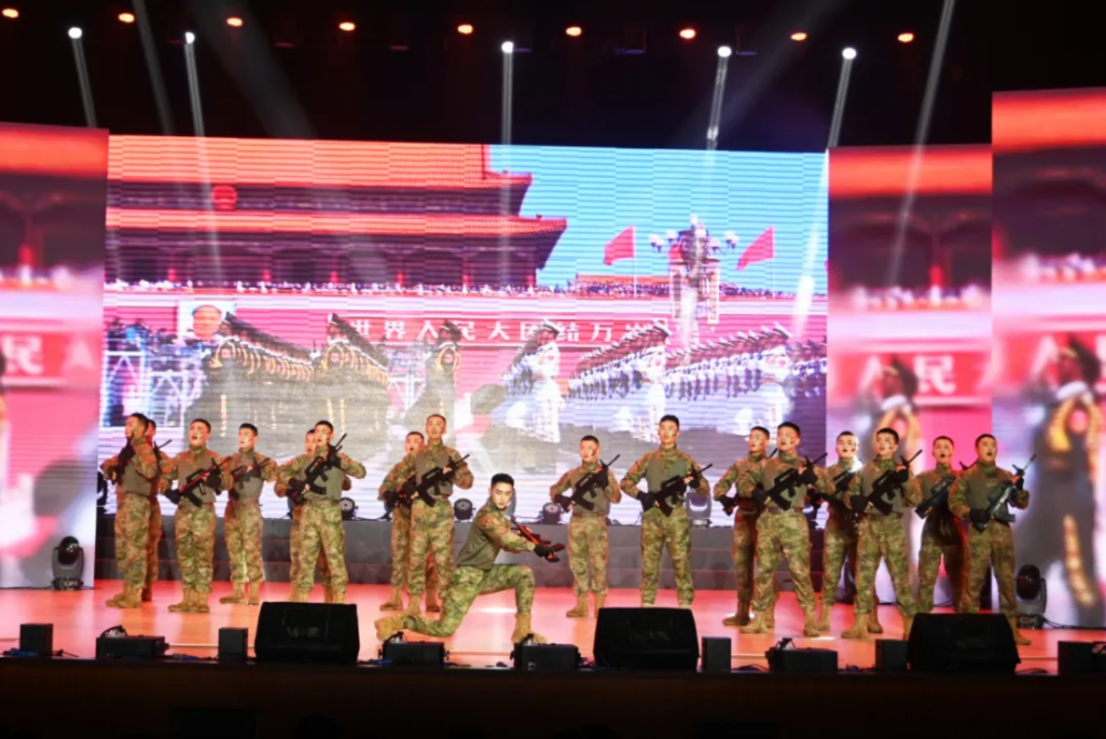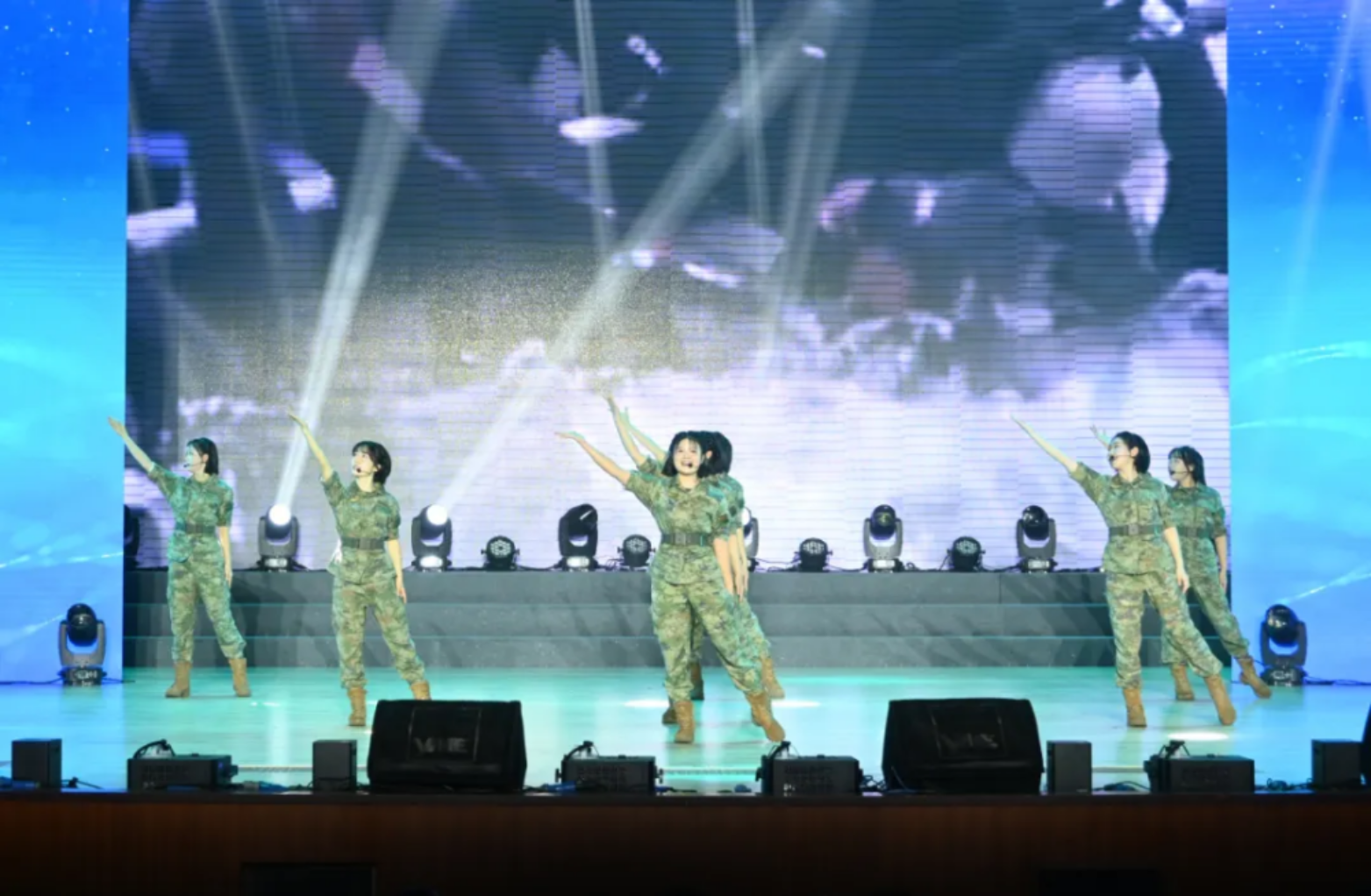 教练勤务营的女兵们表演的歌伴舞《有我》,表达了广大官兵坚守战位守护家国的忠诚与担当。