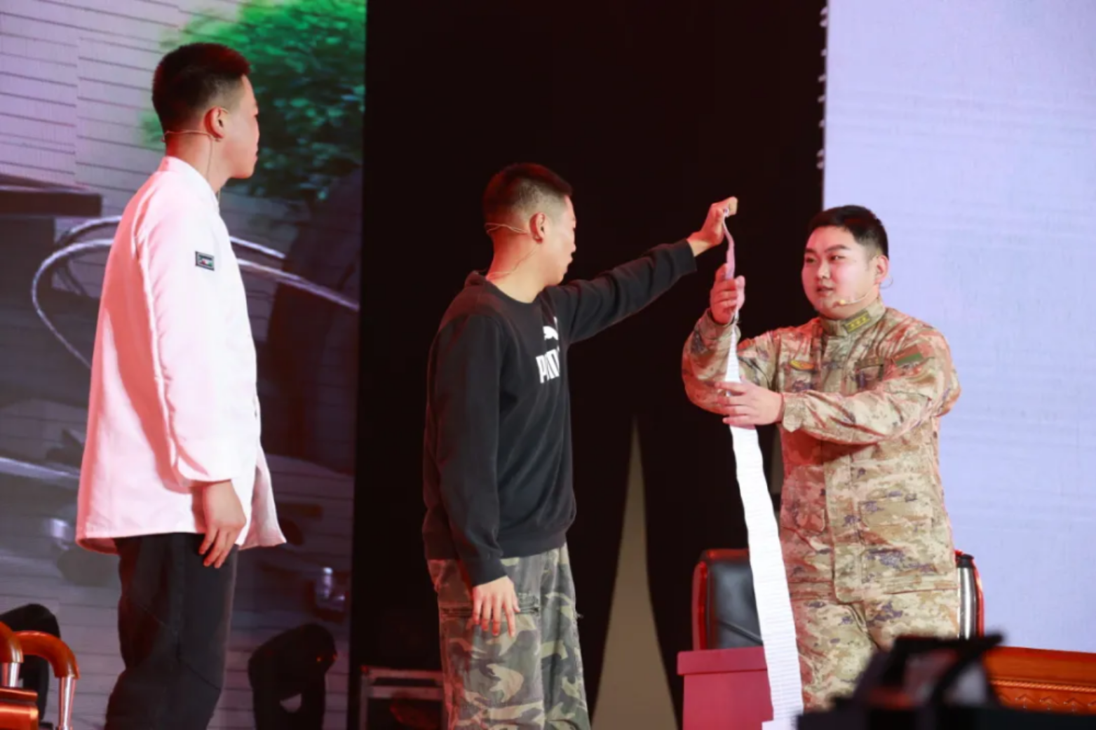 “抓住胃、稳住心、影响脑”,由各食堂工作人员表演的三句半《闲话食堂》,道出了食堂的可喜变化。教练勤务营汽车连战士表演的小品《提意见》,用幽默诙谐的语言赢得在场官兵的开怀大笑和阵阵掌声。