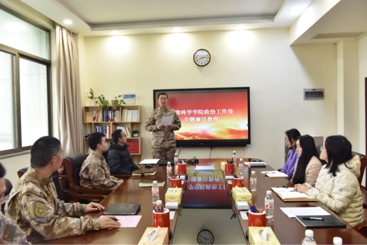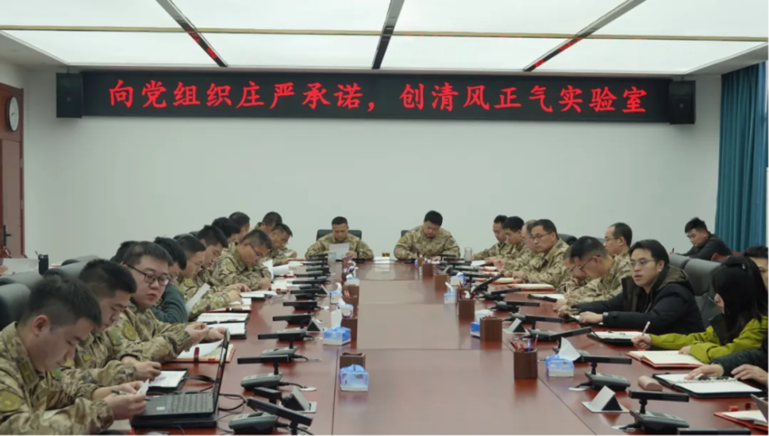 学校各单位结合工作实际,把集中签订廉洁承诺书与学习党纪军规、开展专题纪律党课、传达案件通报、现地教学等结合起来,进一步打好“预防针”、绷紧“思想弦”,教育党员干部常修为官之德、常思贪欲之害、常怀律己之心,不断增强政治定力、纪律定力、道德定力、抵腐定力,将纪律规矩内化为日用而不觉的言行准则,推动全面从严治党、全面从严治军向纵深发展。