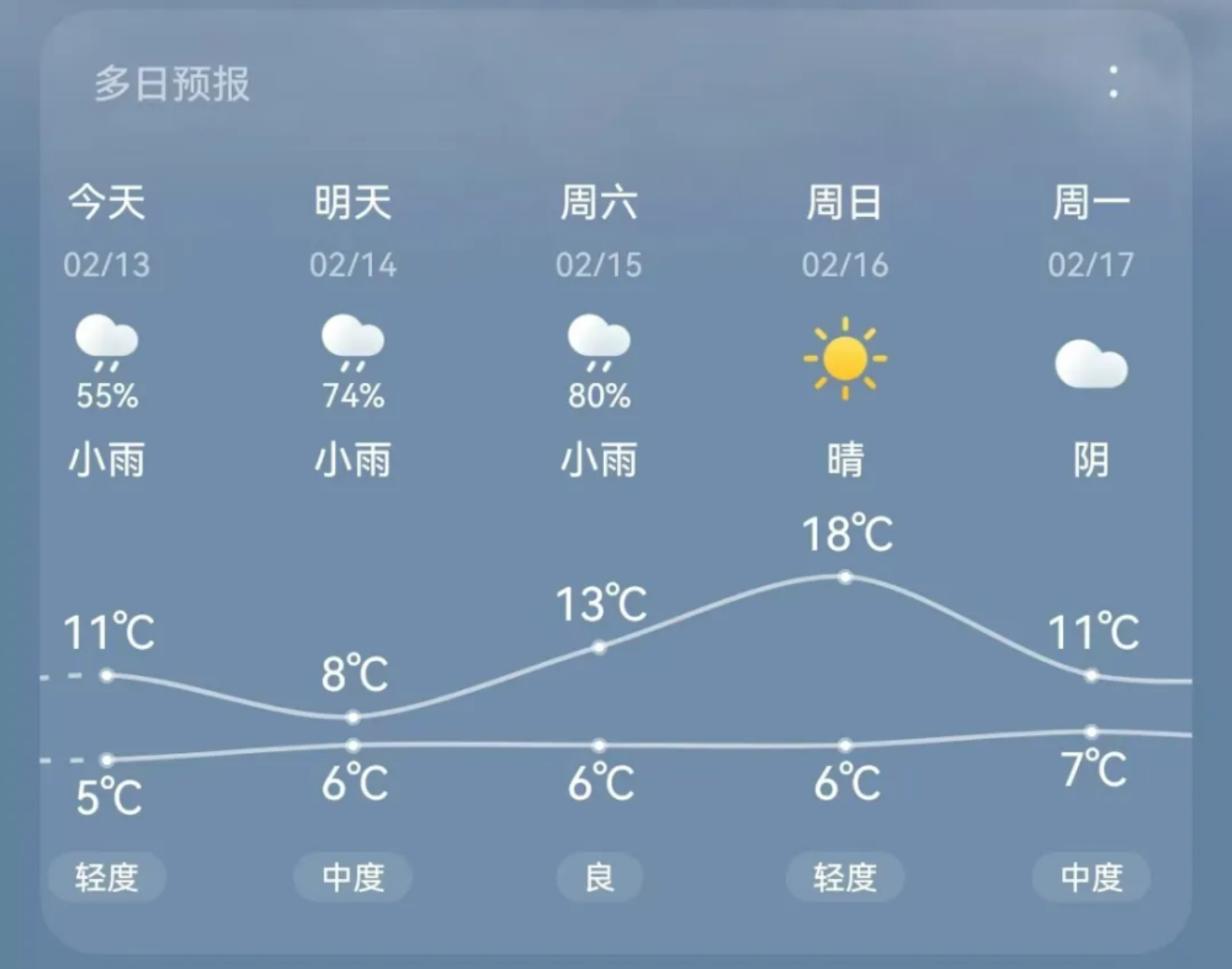 冬春变换之际,天气情况复杂多变,大家要关注返校途中以及驻地天气情况,提前规划行程,防止因天气原因影响按时返校。根据气象预报显示,2月15日至19日,长沙、武汉、合肥、南京等地气温波动较大,降水概率较高,大家要注意保暖和防风。
