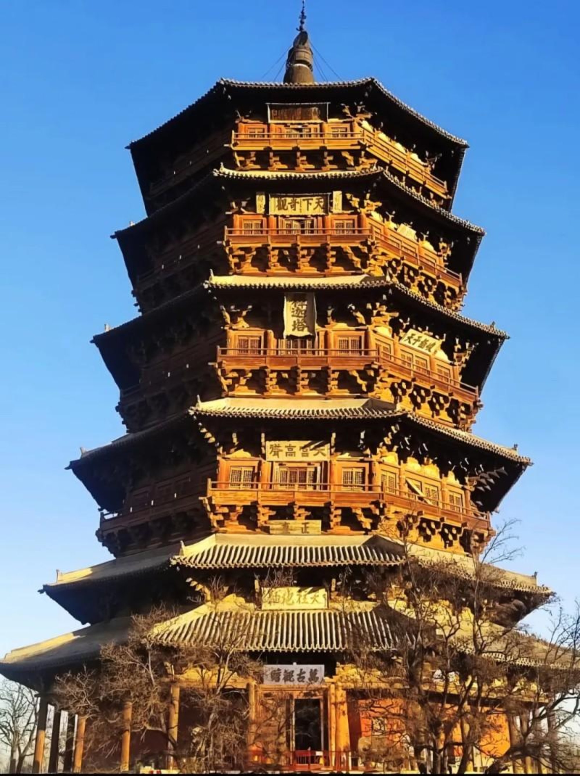 层檐叠起,如翼振于青冥;古木凝香,似心守于尘外。此塔以榫卯为骨,斗拱为魂,历辽金风雨,阅人间兴替。不借一钉一铆,却能撑住千年日月;不施浓墨重彩,自可映出万里云天。释迦塔是时光的坐标,也是文明的注脚,在天地间静静矗立,看尽古今流转。