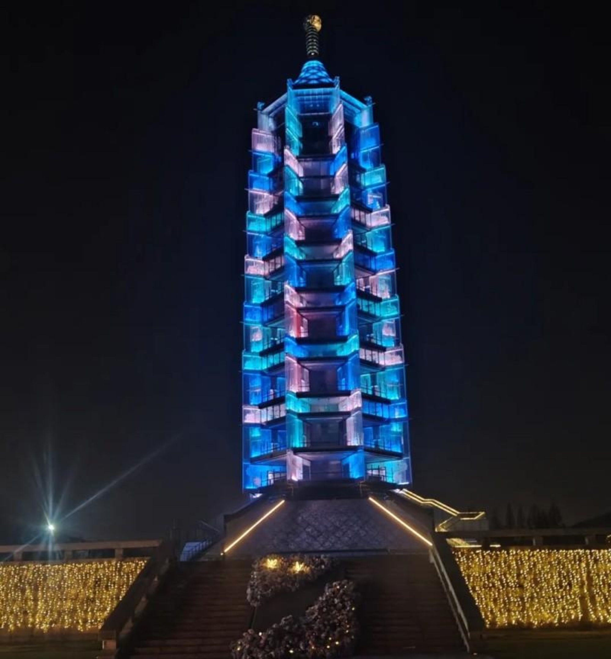 夜色中的大报恩寺琉璃塔,以现代光影重焕千年风华。这座曾被誉为 “天下第一塔” 的建筑,是明代永乐盛世的象征,承载着中外文化交流的厚重记忆。康熙帝南巡时题诗:“琉璃垂法相,翡翠结香烟。缔造人工巧,流传世代迁。” 如今,透明的塔身与璀璨灯光,让古老的琉璃塔在新时代中,续写着属于它的传奇故事。