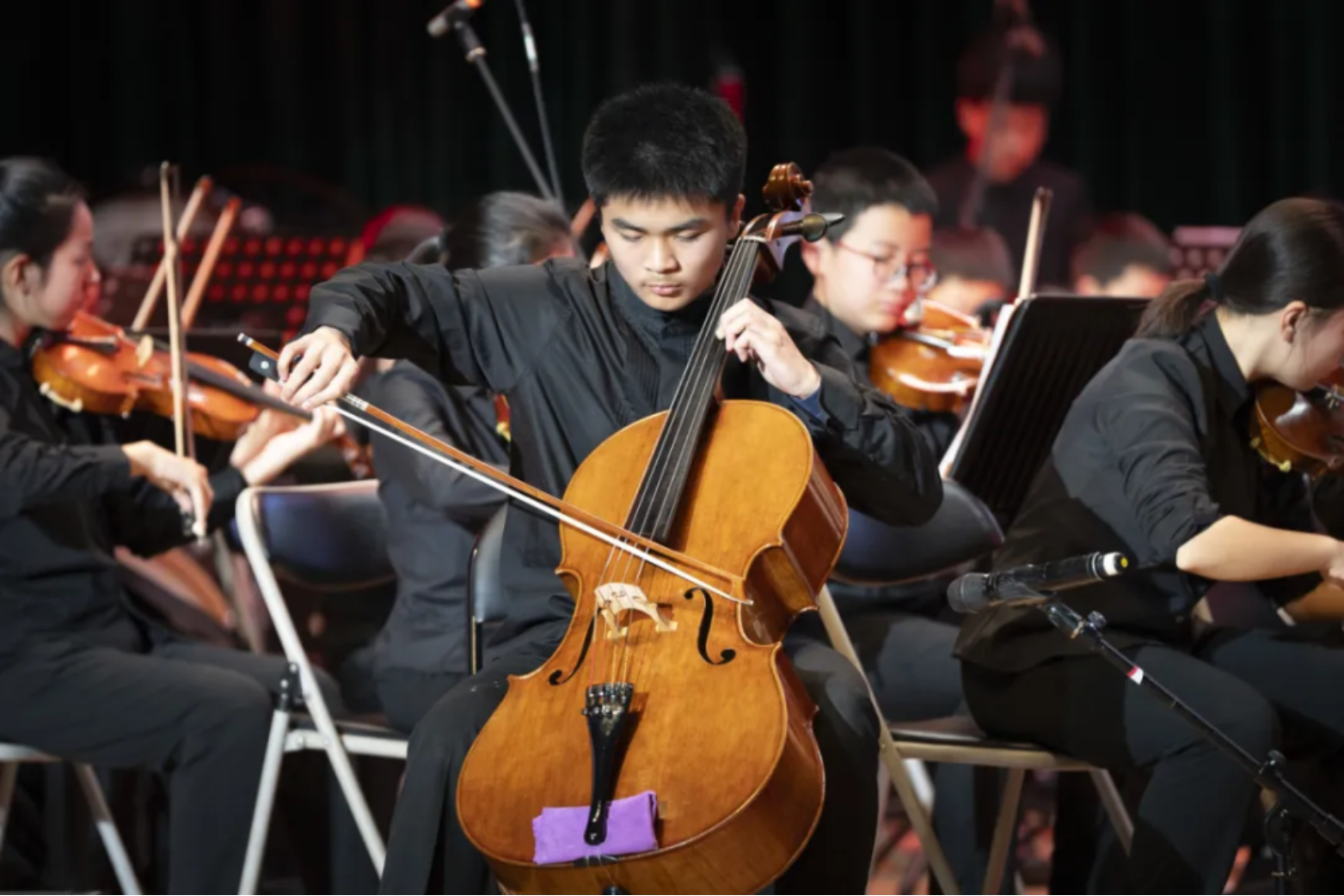 由9名八一小学的学生和毕业校友倾情演绎的小提琴合作曲《如愿》,更是将大家带入了一段波澜壮阔的历史长河之中。他们凭借细腻的情感以及娴熟的演奏技艺,仿佛在琴弦上讲述着一代代中国人为了实现梦想、为了国家的繁荣富强而不懈奋斗的故事。那悠扬的小提琴声,和着乐队的协奏,声声入耳,句句走心,如同青春的誓言,激励着每一位听众勇往直前。
