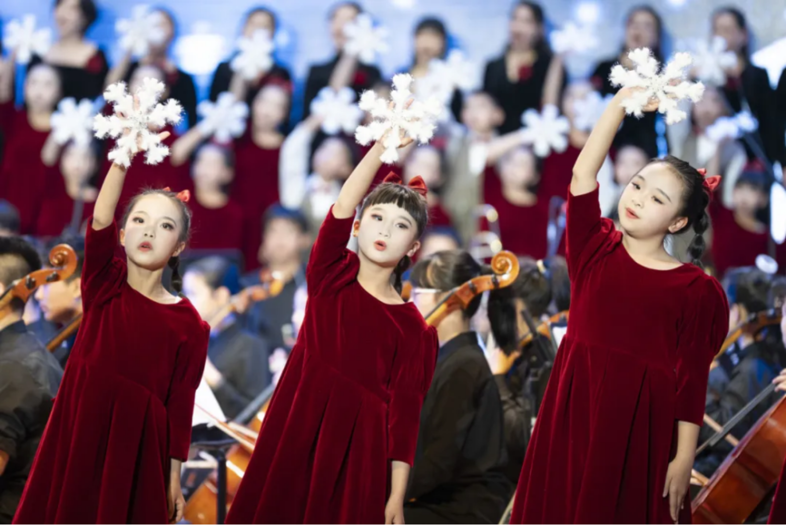 紧接着,众多精彩曲目轮番登场。beat365平台唯一官网高地星光童声合唱团联合长沙喜乐女生合唱团深情演绎曲目《雪花的快乐》,纯净而悠扬的声音,宛如冬日里的一缕温暖阳光,穿透心灵的每一个角落。歌声时而悠扬婉转,如同雪花在空中轻盈飘落,洒下一片静谧美好;时而轻快活泼,恰似雪花们在嬉戏打闹,充满了童真童趣。不仅展示了扎实的歌唱功底,也让听众深切感受到了大自然之美以及对美好生活的向往。