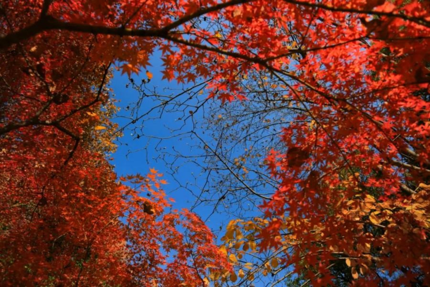 金陵的秋意,总爱藏在校园的转角,是抬头便能撞见的一抹惊艳——丹枫燃着炽烈的焰色,将澄澈蓝天裁成玲珑心形。疏朗枝桠轻轻摇曳,风一吹,细碎的红叶便簌簌飘落,落满身着戎装的少年肩头,这抹撞满怀的热烈,是属于“外院”的限定浪漫。