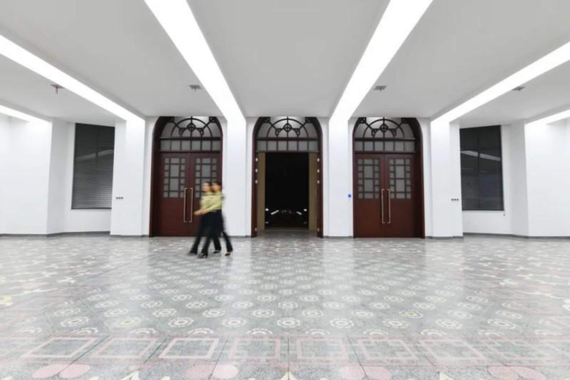 大礼堂是历届学子心目中圣地般的存在。那里有嘹亮的歌声,那里有荡漾的心绪,那里有澎湃的激情。这是大礼堂登堂入室、正心修行的所经之地。修旧如旧,风貌依旧,源于对历史的尊重和老建筑的珍视。这扇仿古大门,曾经叩开了多少青春的心扉?这片水磨石地砖,曾经留下了多少青春的脚印?