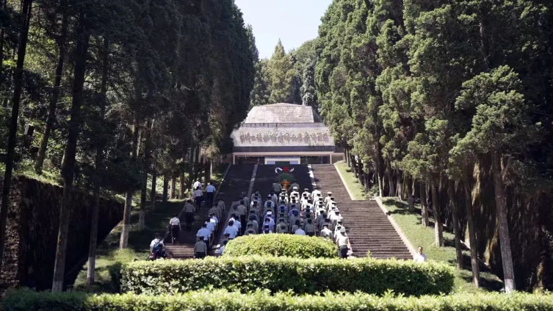 井冈山烈士陵园内,参训学员肃穆站立,现地感悟革命先烈们当年的艰难困苦与浴血荣光,仿佛看到八角楼的灯光照亮了中国革命前进的方向,又仿佛看到星星之火以燎原之势引领我军取得一个又一个胜利。