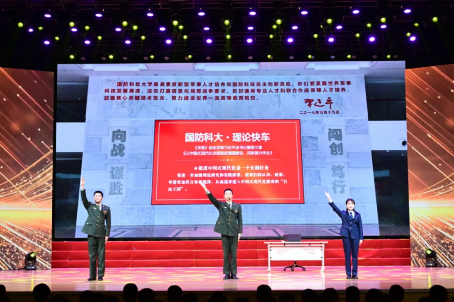 音诗画《何为忠诚》通过一场学子与师长们穿越时空的对话,展现了著名科学家钱学森指导建系和老一辈系统工程人心怀强国强军之志、筚路蓝缕艰苦创业的光辉历程。歌舞《阵地》表达了师生员工们坚守战位铸魂育人的忠诚与担当。