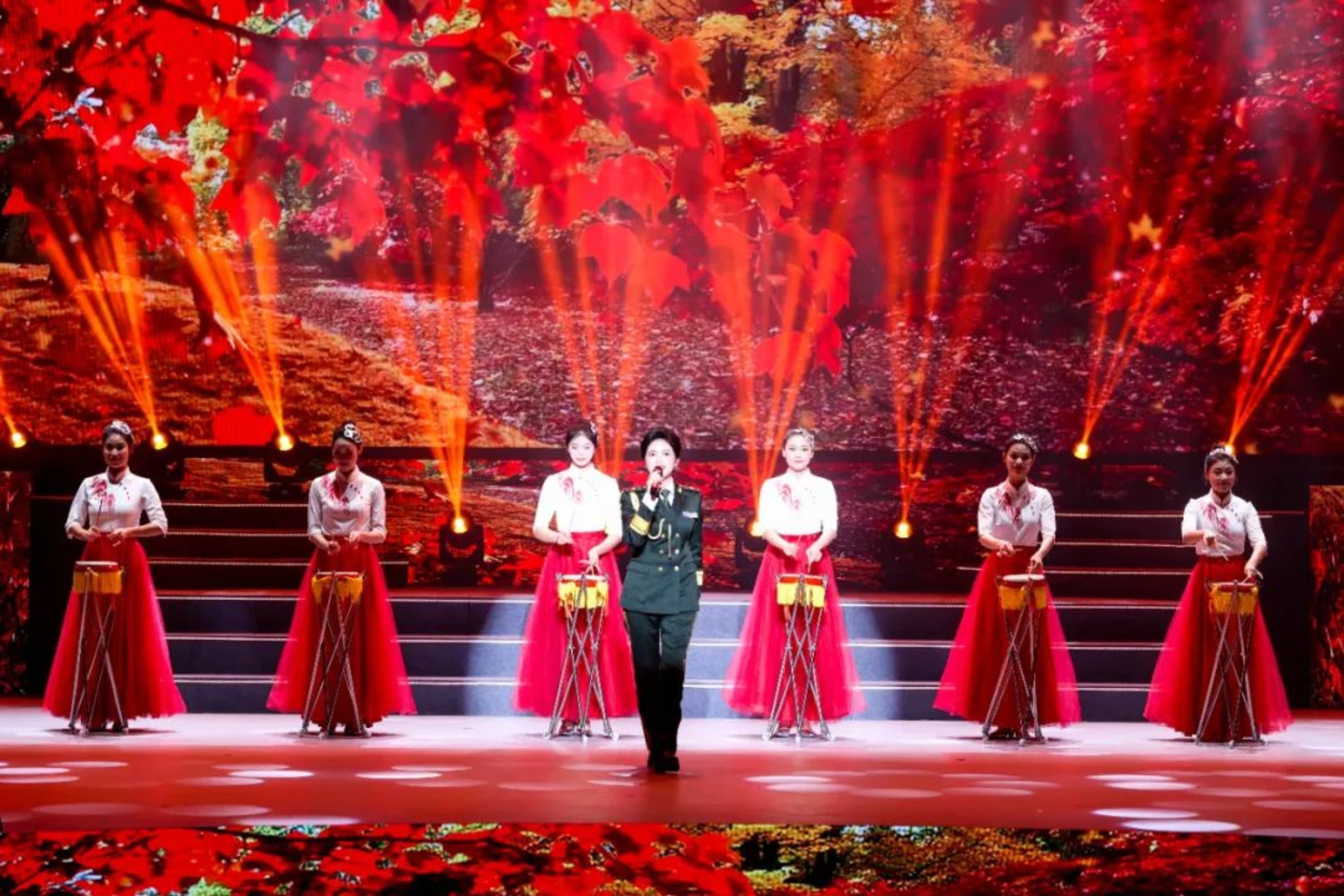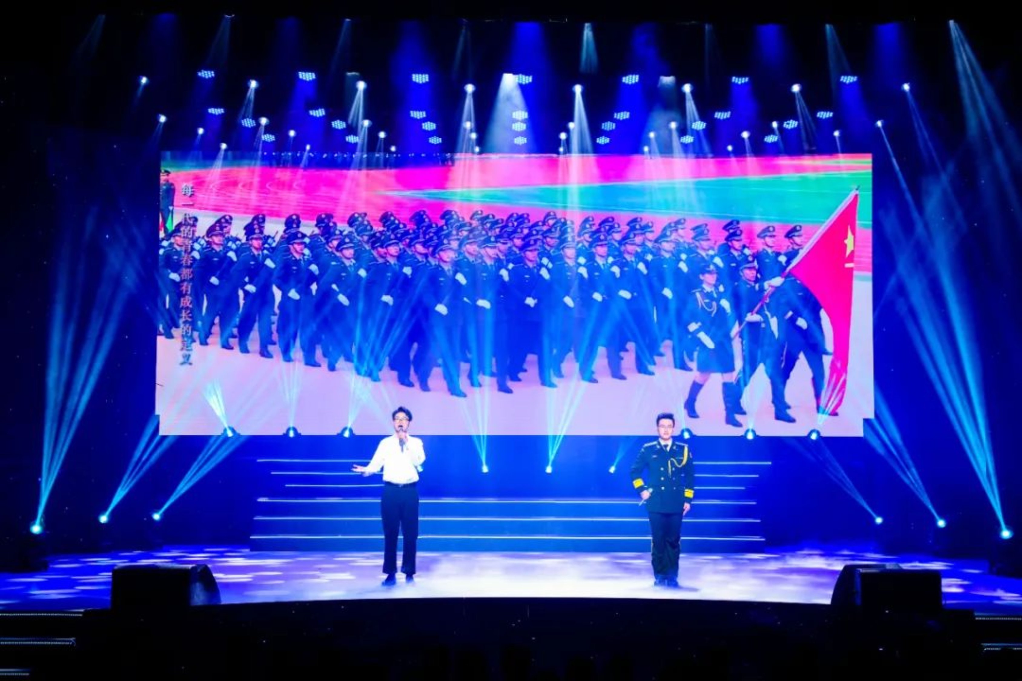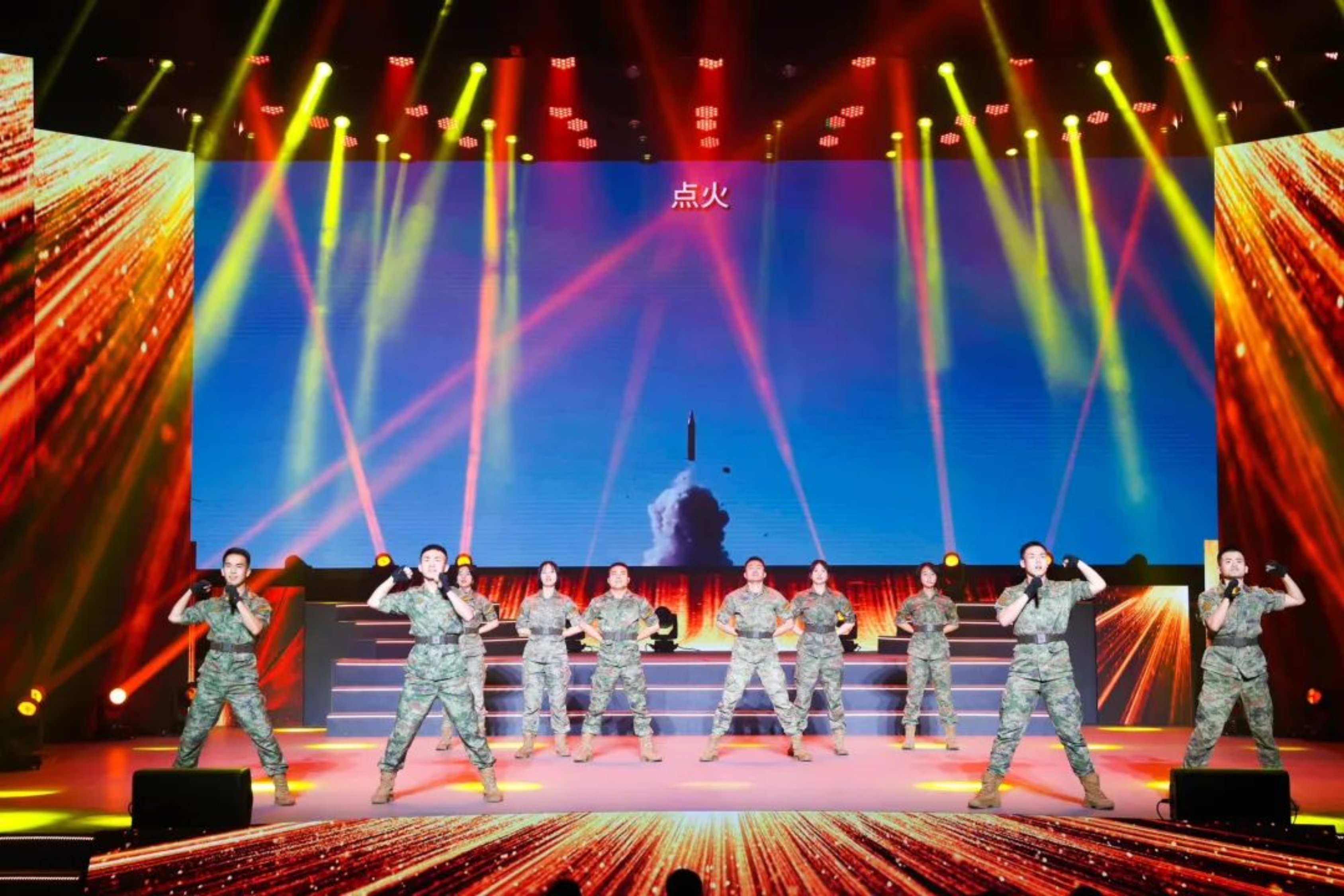 “点火、点火、点火”,由火箭军工程大学学员带来的歌曲联唱《砺剑战歌》,极具特色战味的歌声让人仿佛置身战场。