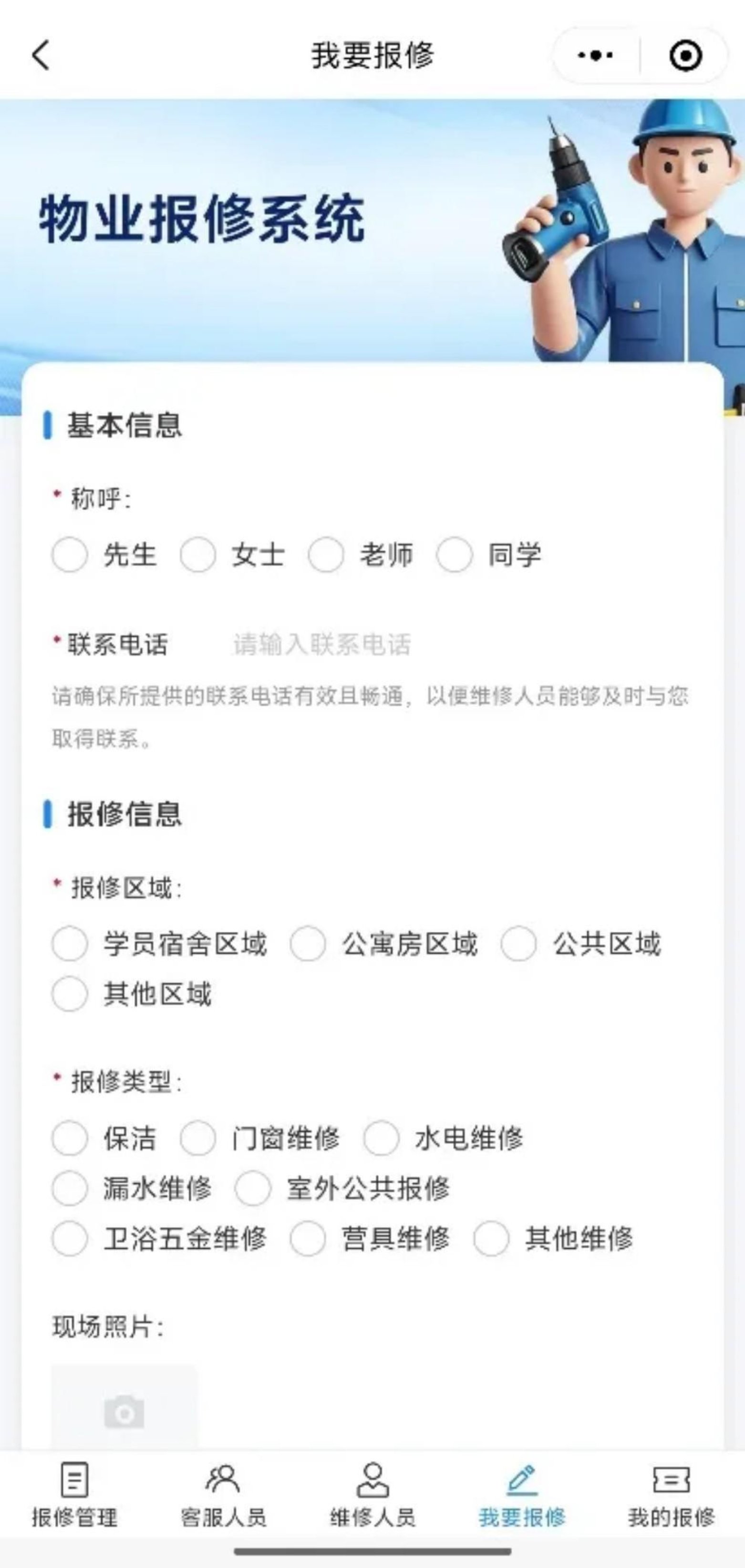 “宿舍卫生间下水堵塞,拍照上传后15分钟师傅就上门了!”公寓住房住户欧阳老师在朋友圈分享的维修历,收获了上百个点赞。“以前啊,我总觉得物业不就是收收钱扫扫地,现在可不一样,咱们学校的物业就像一个贴心的小管家,现在在微信小程序上报修,分分钟就会收到反馈。”前沿交叉学科学院学员王佳琦笑着说道。近些年,在物业管理方面,微信报修程序的上线无疑是服务模式的一次革新,师生只需简单几步操作,就能将报修需求发送至系统,维修人员可实时接收并快速响应,维修进度全程可视。指尖报修不仅提高了维修效率,减少了师生等待的时间,更重要的是搭建起一座与师生紧密相连的沟通桥梁,让服务保障更加贴心、透明,提升了师生对物业管理的满意度。