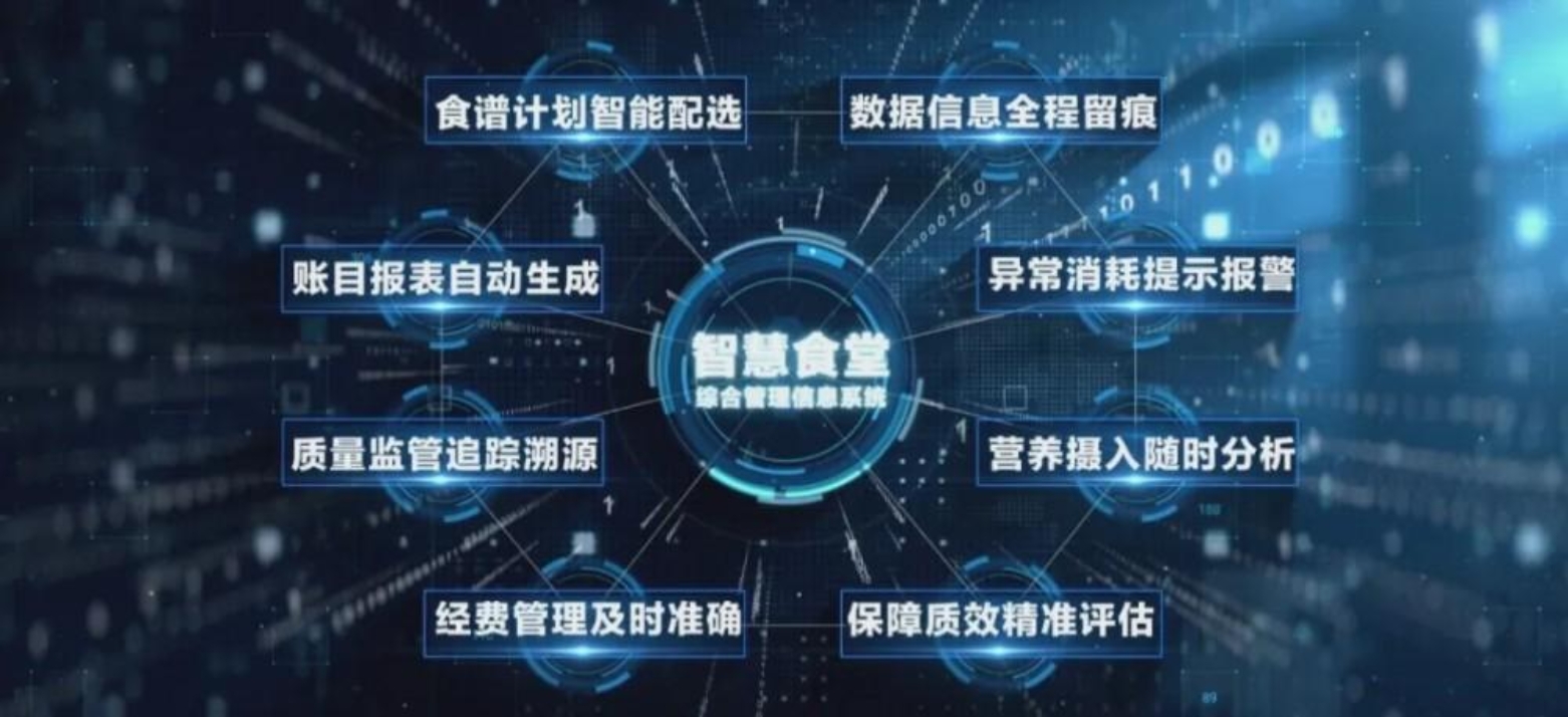 智慧食堂综合管理信息系统,实现“食谱计划智能配选、数据信息全程留痕、账目报表自动生成、异常消耗提示报警、质量监管追踪溯源、营养摄入随时分析、经费管理及时准确”等功能,让饮食保障质量更加精准高效。
