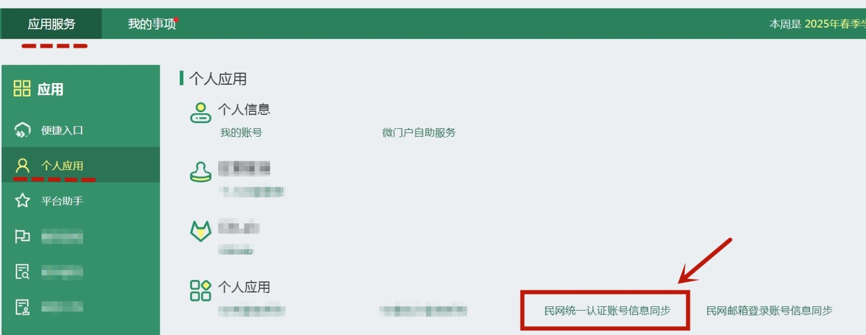 网办大厅→右上角搜索框输入民网统一认证账号信息同步→点击进入