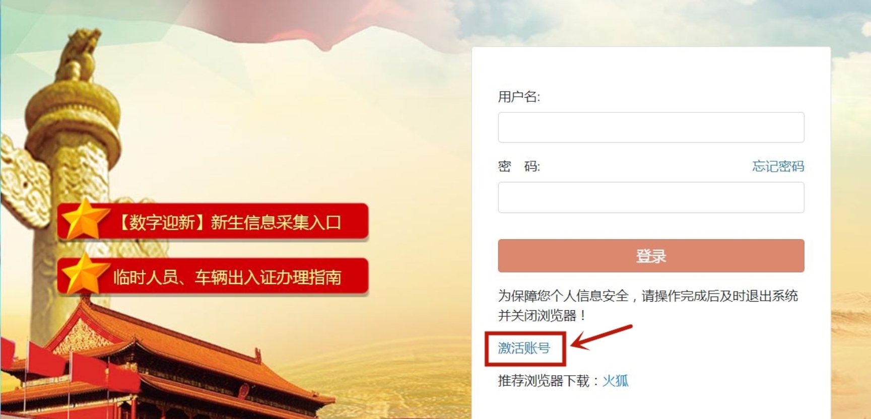 完成新生信息采集后,访问校园网校首页→右上角“办事大厅”→点击“激活账号”,在新页面“校验信息”→“自定义账号”,按流程提交。