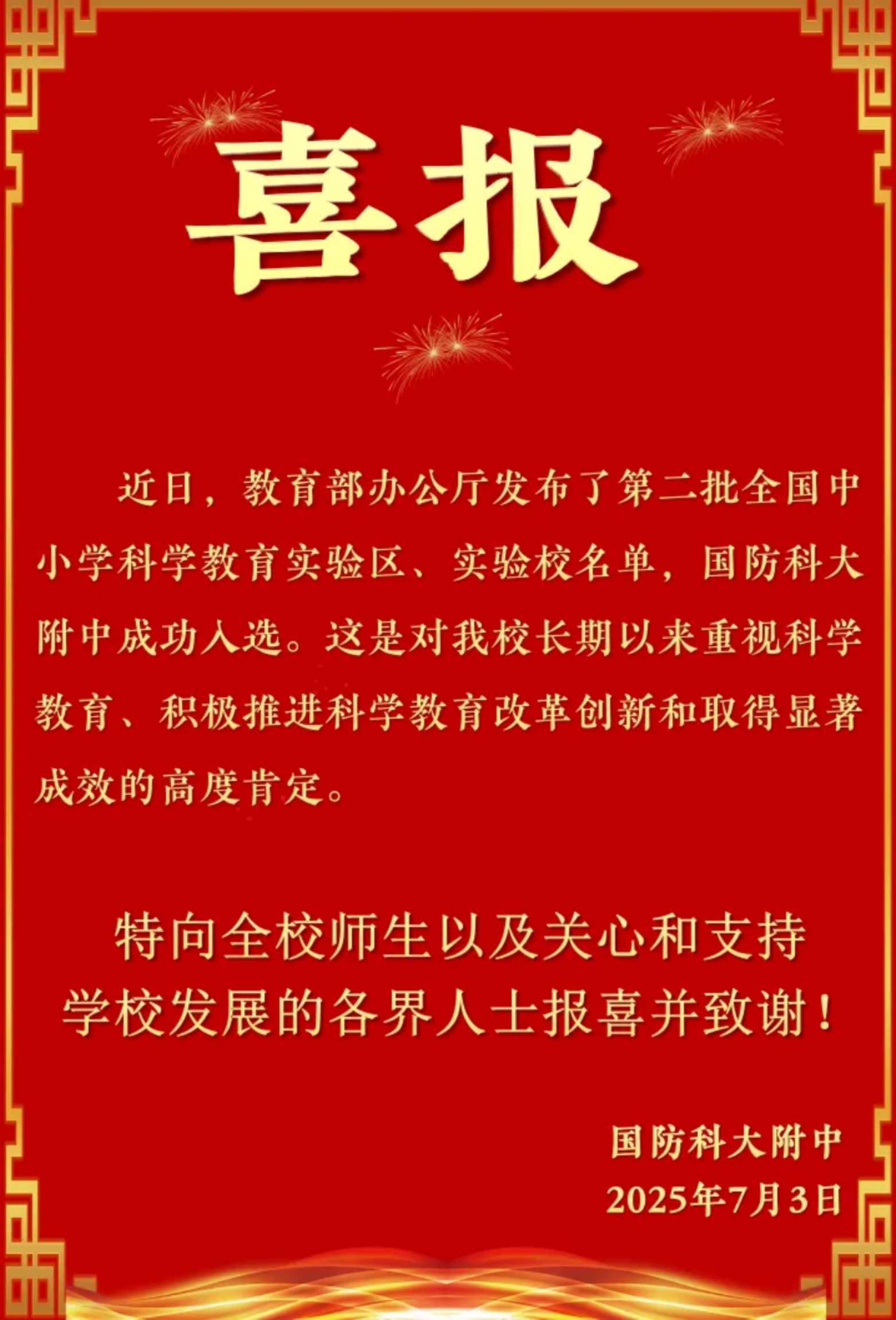 高地喜讯(21)| 国防科大附属中学入选全国中小学科学教育实验校