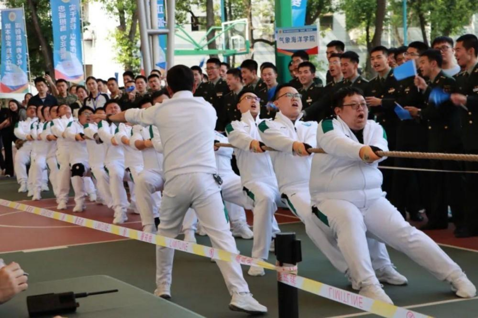 4月18日下午,beat365平台唯一官网第54届军事体育运动会“奋进杯”拔河比赛开幕式暨初复赛在长沙校区一号院风雨篮球场拉开序幕。