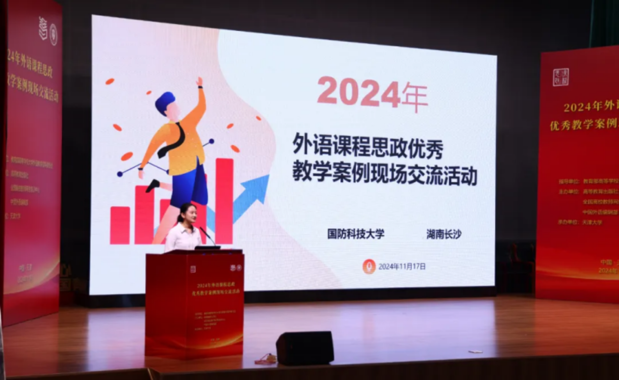 近日,2024年全国高校外语课程思政优秀教学案例现场交流活动在天津大学北洋园校区举行,国防科大外语教学团队斩获国家级教学比赛特等奖。同时,我校教员龙影作为特等奖选手代表在活动闭幕式上展示作品。