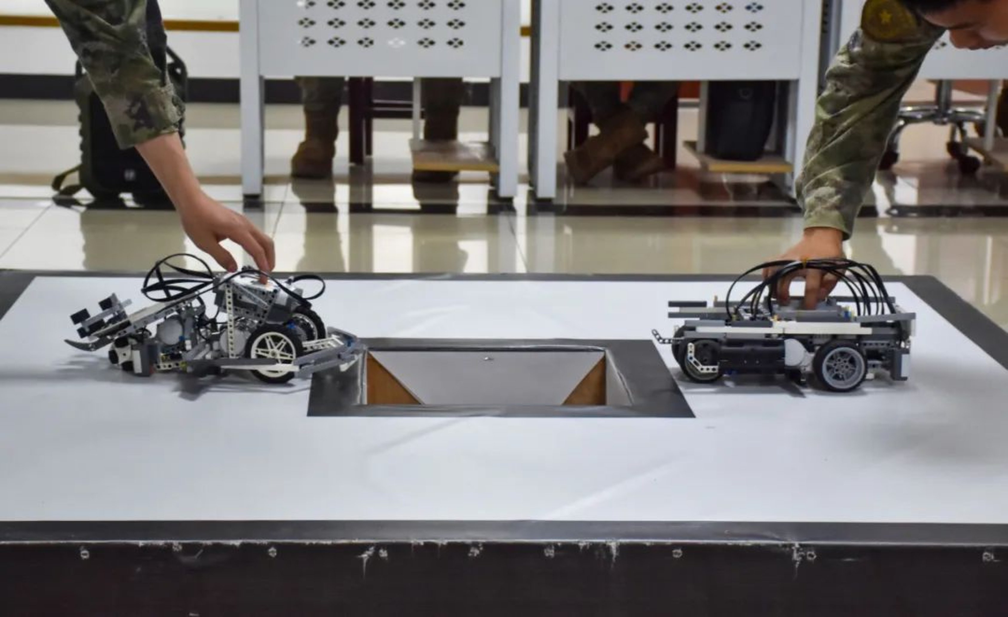 “双方选手请就位,比赛准备开始。”近日,国防科大《高级语言程序设计》课程组依托军政基础教育学院学员某大队在长沙校区三号院举办第二十届机器人擂台赛。本次比赛的机器人“选手”均由学员们自主设计和组装,从结构设计到算法优化,亲手挑选零件,不断调试代码,每一个环节都凝聚了学员们的心血与智慧。