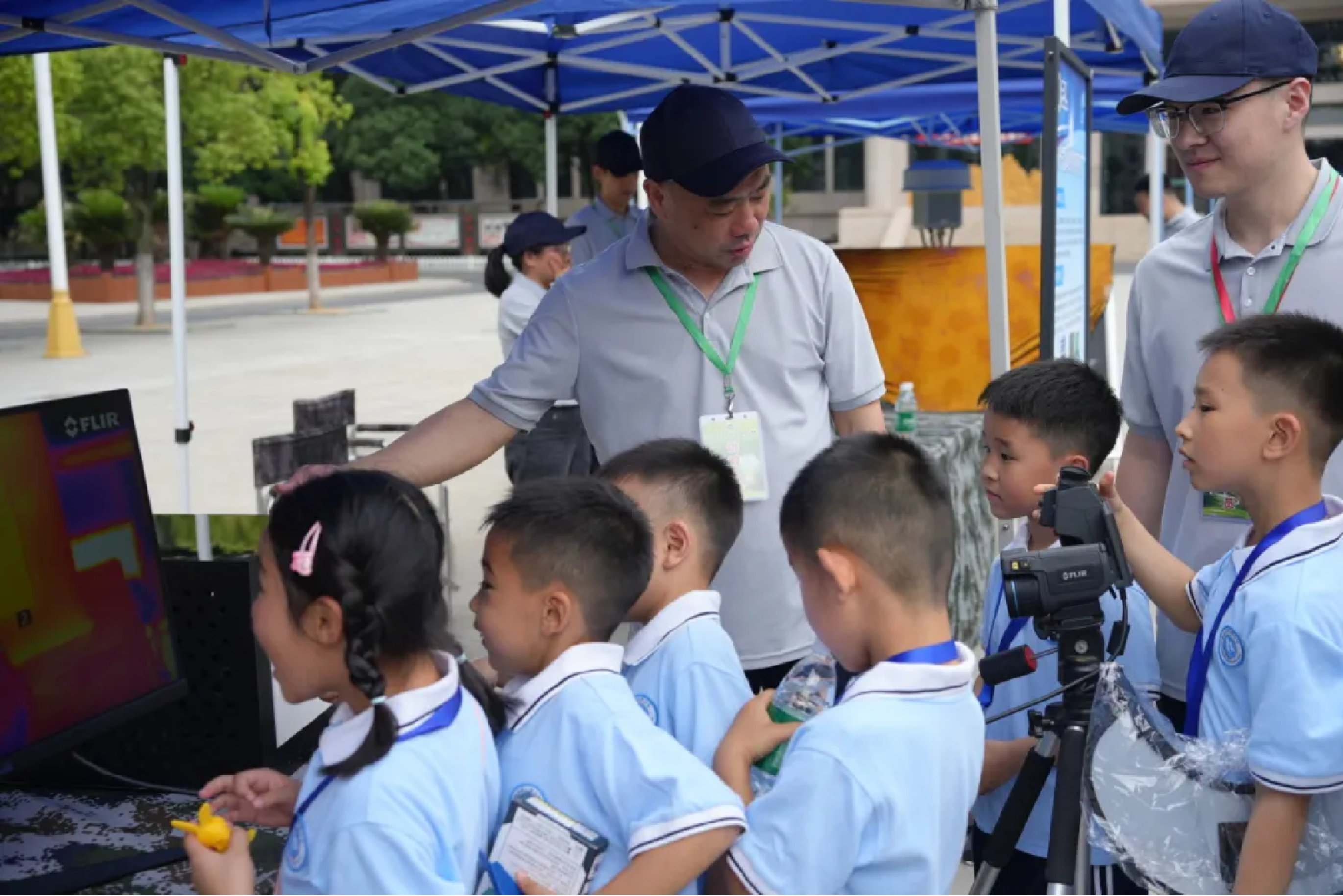 科普项目展示现场,讲解员与现场学员积极互动,引导他们亲身体验,实际操作,沉浸式体验光电科学的神奇魅力。