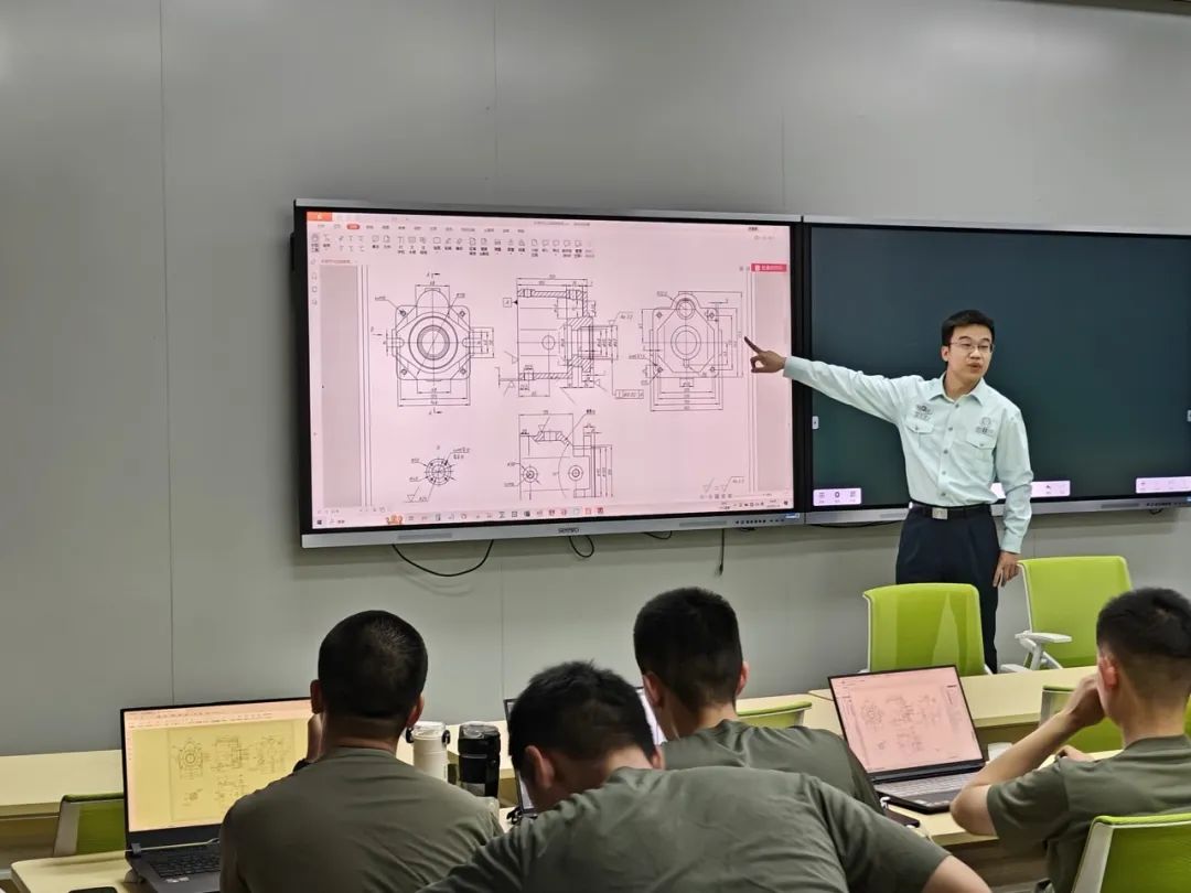 为提升成图领域人才培养质效,国防科大2019年专门成立图学与设计俱乐部,践行“以赛促教助创新,以赛促学助成长”的培养模式,依托智能科学学院开设的《工程制图基础》、《机械设计基础》、《工程技术训练》等课程进行基础知识强化,依托《工程制图基础》、“机械基础”核心课程(群)教学团队,选取参加成图大赛并获得“三维建模”一等奖的教员,以及长期从事于机械类基础课程教学的教员组成指导团队,定期开展内容讲解,组织赛题训练。同时聘用历年成图大赛获奖的学员组成“小教练团”进行辅助培训,教员、学员间进行积极的讨论互动,在思维的碰撞中产生别样的火花和新思路。