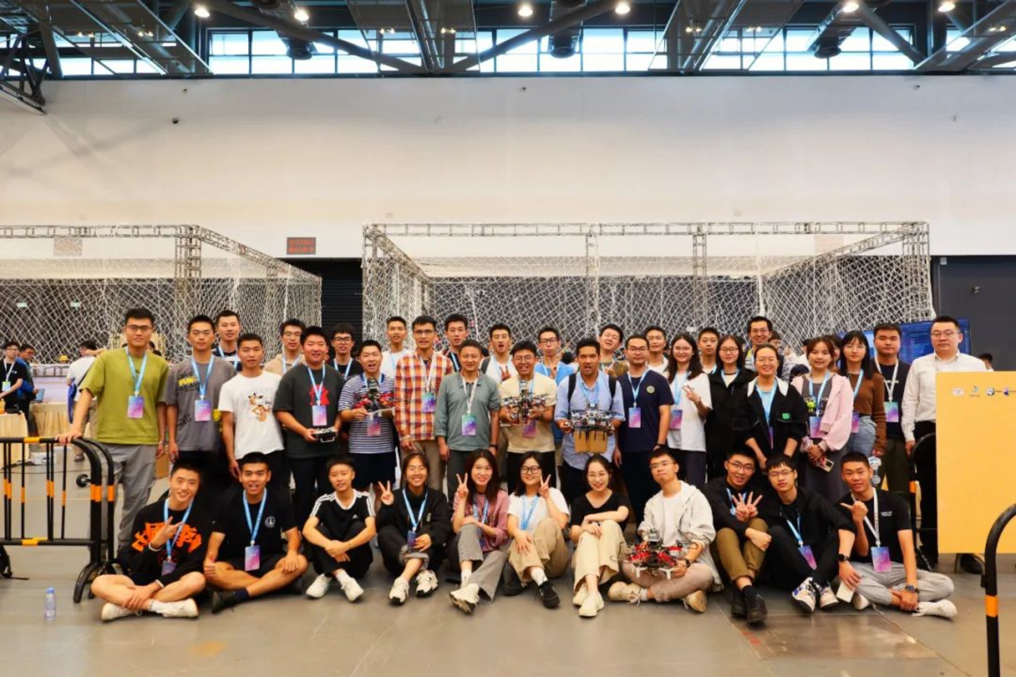 近日,2023年中国机器人大赛暨RoboCup机器人世界杯中国赛落下帷幕。大赛吸引了全国260所高校的1084支队伍参赛,国防科大智能科学学院代表队斩获无人机挑战赛项冠军、亚军各1项。 近日,2023年中国机器人大赛暨RoboCup机器人世界杯中国赛落下帷幕。大赛吸引了全国260所高校的1084支队伍参赛,国防科大智能科学学院代表队斩获无人机挑战赛项冠军、亚军各1项。 本次参赛项目包括无人机识别与快递运输实物赛和多旋翼无人机集群协同搜索仿真赛。其中,实物赛为障碍环境中无人机货物运输比赛,要求无人机从起点搭载货物出发、穿过障碍区、找到合适的靶标投放快递、自主完成降落,主要考察无人机自主飞行、障碍规避、目标识别、货物投送能力。仿真赛构建了类似城市街区的虚拟环境,要求6架无人机在规定时间内发现并锁定区域内的所有恐怖分子,需要完成目标检测、视觉伺服、运动规划、机间协同等多个环节。